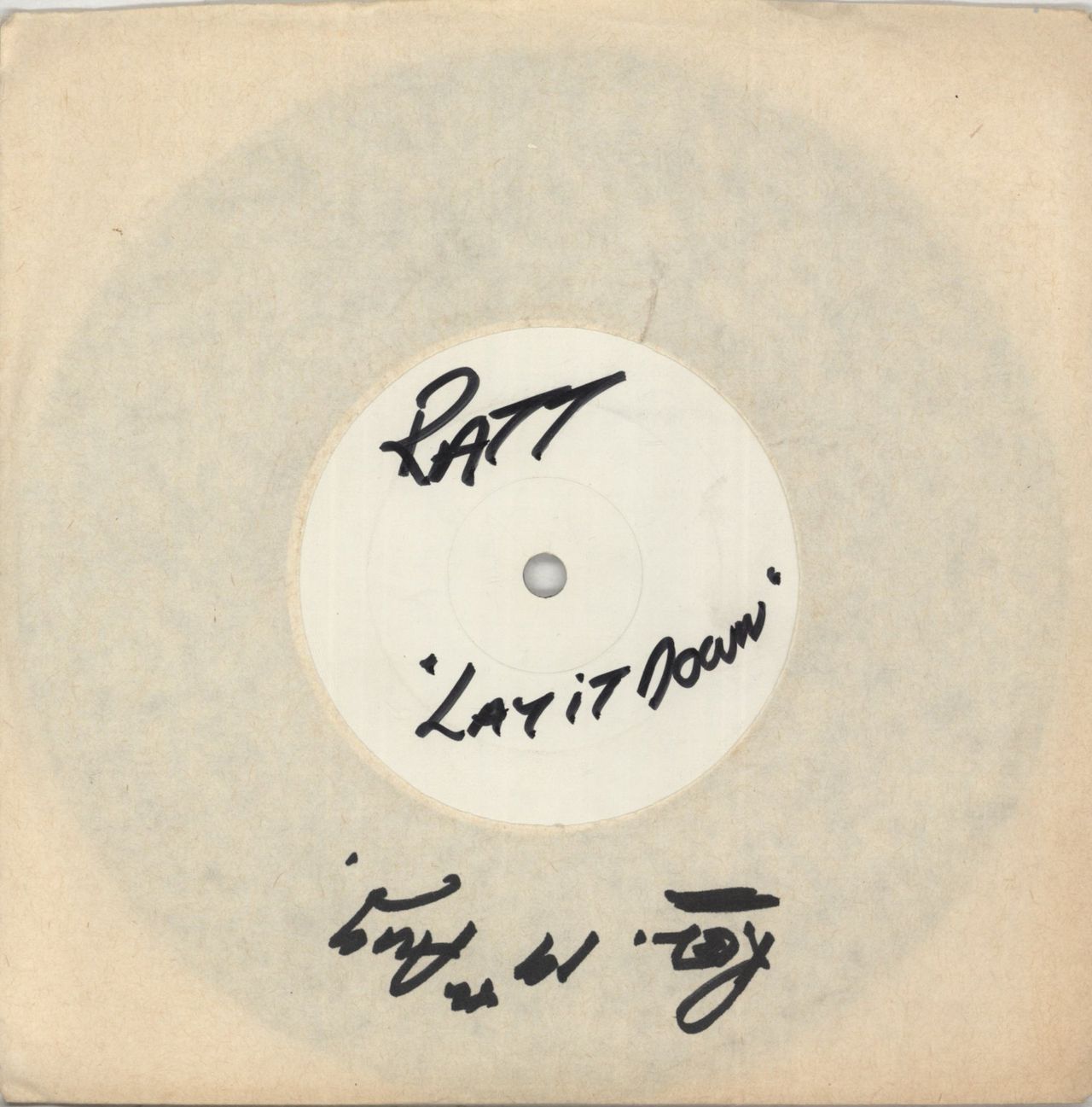 VENOM Nightmare (Rare 1985 UK white label 7" vinyl single test pressing with a solid centre, also including Satanachist, within a plain sleeve. The label has been written on (incorrectly) with 'Ratt "Lay It Down"' - although the matrix numbers(and playtesting) confirms it is the Venom classic. The sleeve has only light wear and the vinyl remains excellent with only light signs of play NEAT 47)