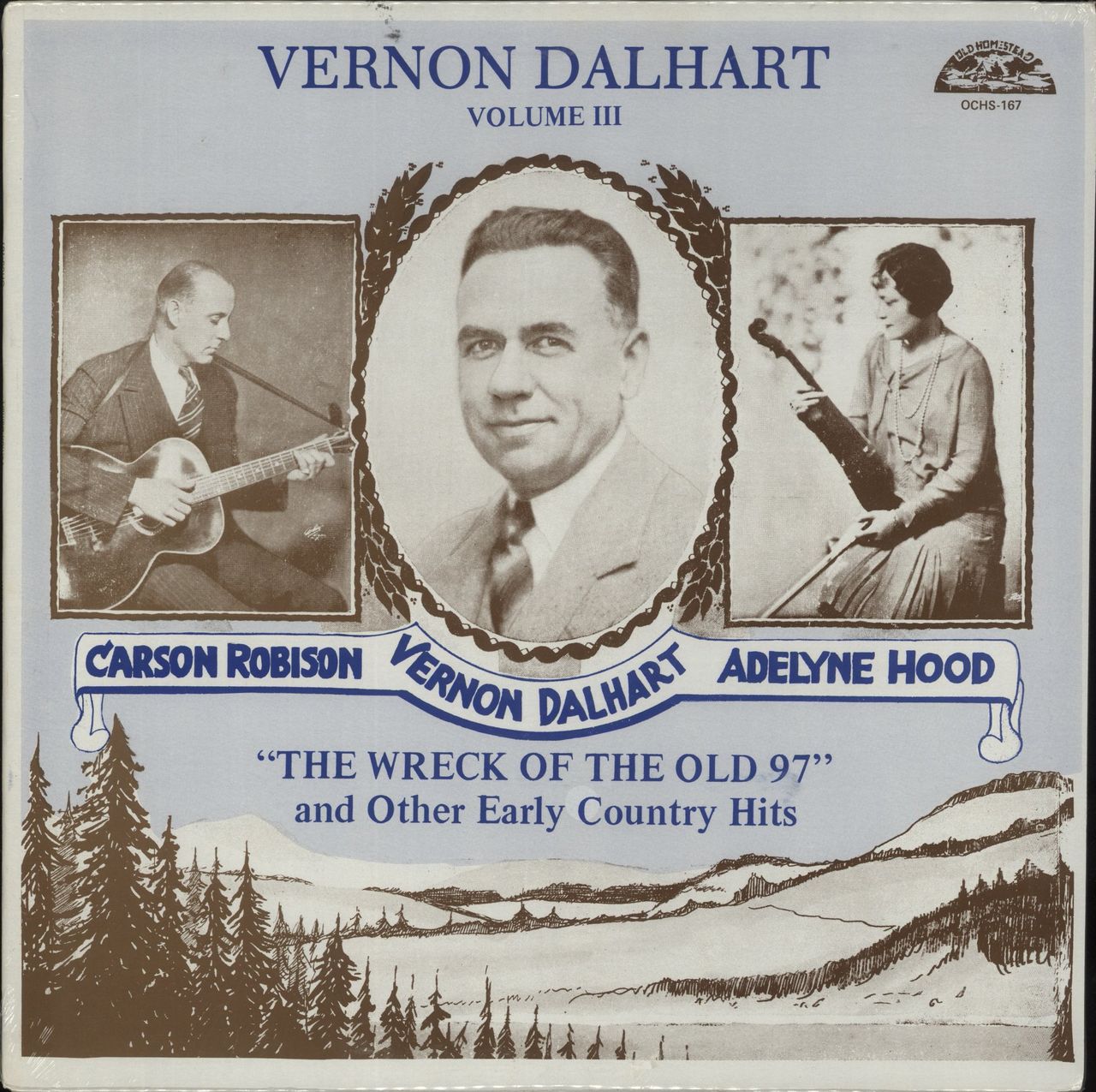 VERNON DALHART "The Wreck Of The Old 97" And Other Early Country Hits - Vol. III (1985 US 18-track LP, joined by Carson Robison and Adelyne Hood, pasted picture sleeve. The vinyl is still in BRAND NEW condition housed in the picture sleeve which remains sealed within its original shrinkwrap OCHS-167)