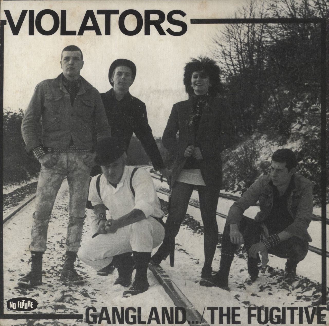 VIOLATORS Gangland... / The Fugitive (1982 UK 7" vinyl single. Picture sleeve with scarce merchandise insert card. The sleeve is Very Good with some faint foxing, a little edgewear and a sticker mark on the reverse. The vinyl shows only light signs of play and handling. OI9)