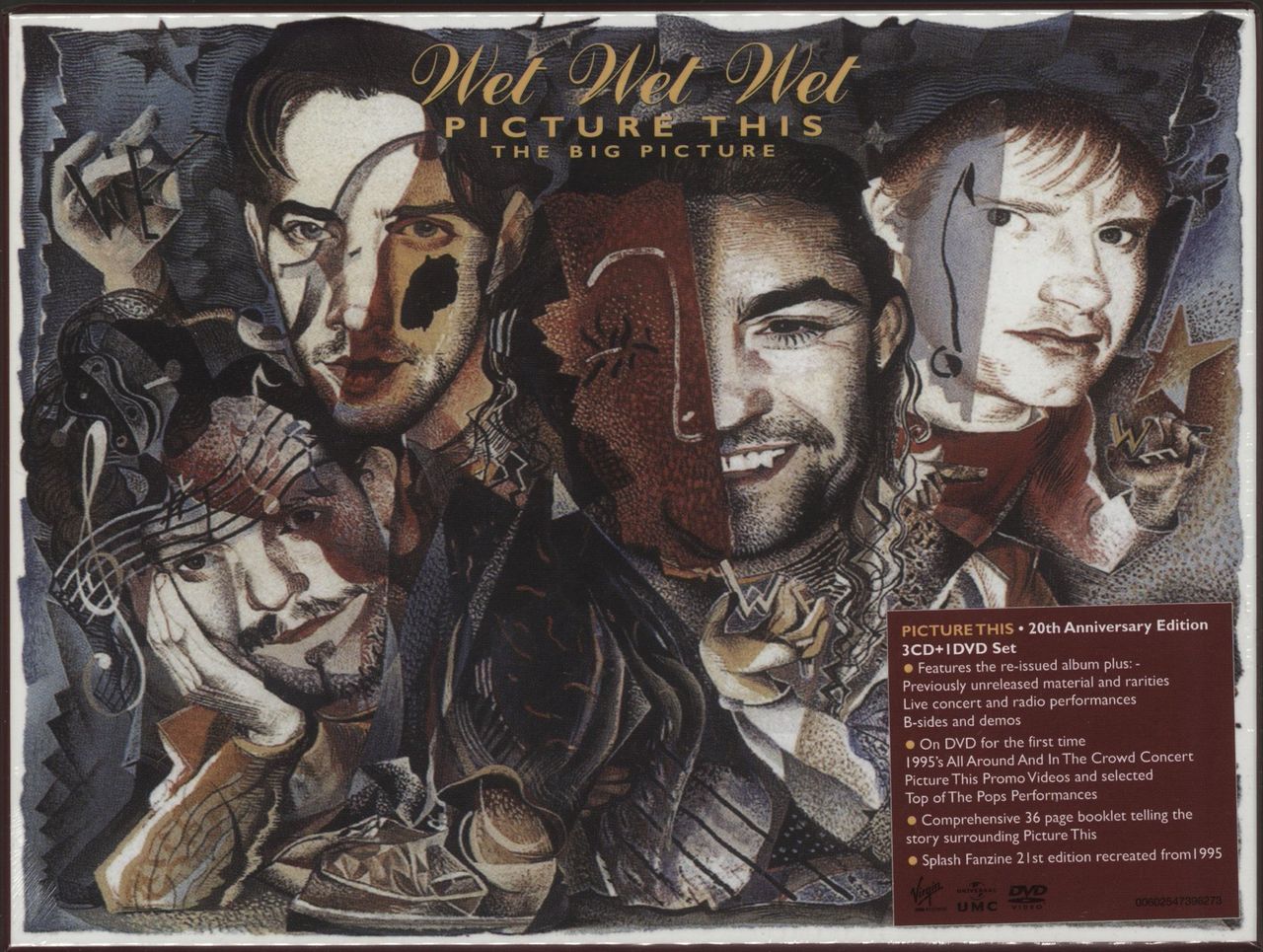 WET WET WET Picture This [The Big Picture] (2015 UK Super Deluxe '20th Anniversary' Edition 3-CD/1-DVD box set comprising the original 12-track album remastered and two bonus CDs featuring a total of thirty seven tracks. Disc 2 features B-sides, rarities and demos and Disc 3 contains live tracks [mostly from the BBC]. The DVD features 1995's 'All Around and In The Crowd' Wembley Arena concert, along with promotional videos and Top of the Pops appearances. All four discs come issued in the 8" x 6" x 1.5" two-piece picture box complete with the 36-page booklet and a replica Splash Fanzine 21st edition. Factory sealed & hype sticker. This copy includes a fully Autographed print, available with early pre-orders!)