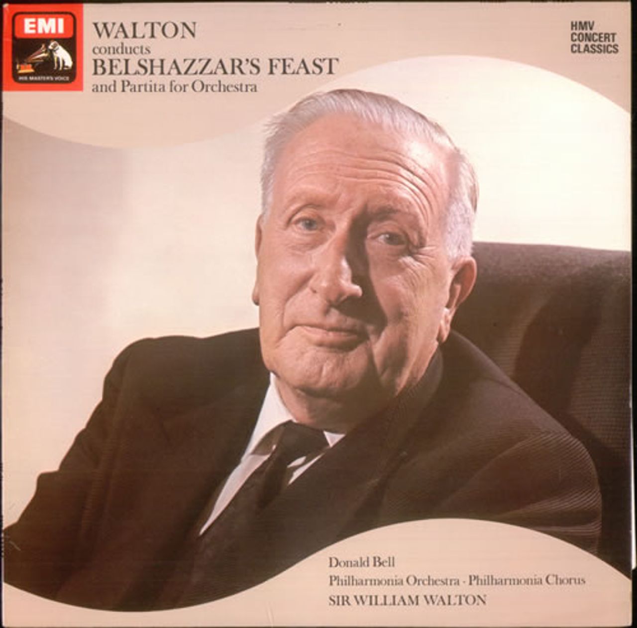 WALTON Belshazzar's Feast & Partita for Orchestra (1970's UK dark blue HMV stamp label stereo vinyl LP, performed by Donald Bell with the Philharmonia Orchestra conducted by the composer, front laminated picture sleeve with extensive liner notes SXLP30236)