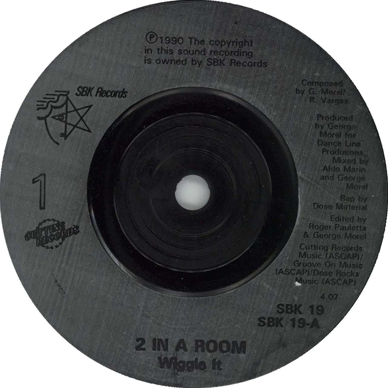 2 IN A ROOM Wiggle It (1990 UK injection moulded 7" vinyl single, also including Take Me Away, plain white die-cut paper sleeve SBK19)