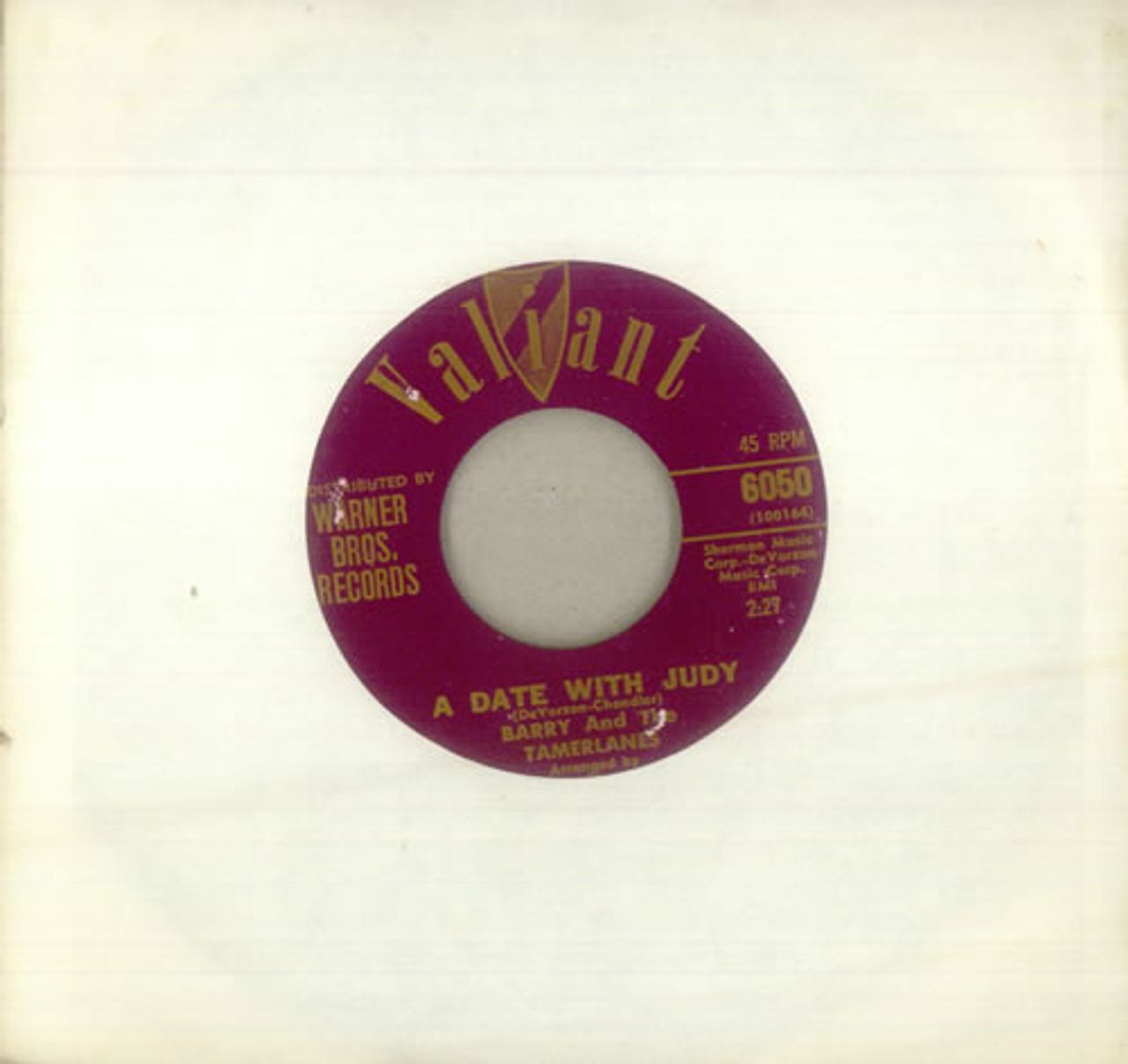 BARRY AND THE TAMERLANES A Date With Judy (1964 US wide centred 7" vinyl single, also including Pretty Things, plain company die cut paper sleeve)