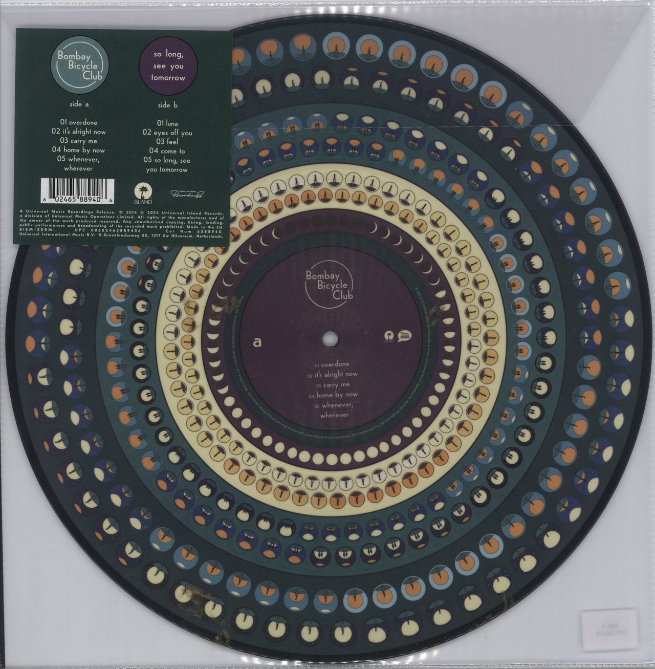 BOMBAY BICYCLE CLUB So Long, See You Tomorrow (2024 worldwide 10-track Zoetrope Picture Disc. 10th Anniversary Edition of the indie rock band's fourth album, originally released in 2014. With guest appearances from Lucy Rose and Rae Morris, including the singles Carry Me, Luna, Feel, Come To and Home By Now. Housed in a clear PVC sleeve with hype-sticker. Includes Autographed artcard, signed in gold marker pen. Limited to only 1500 copies )