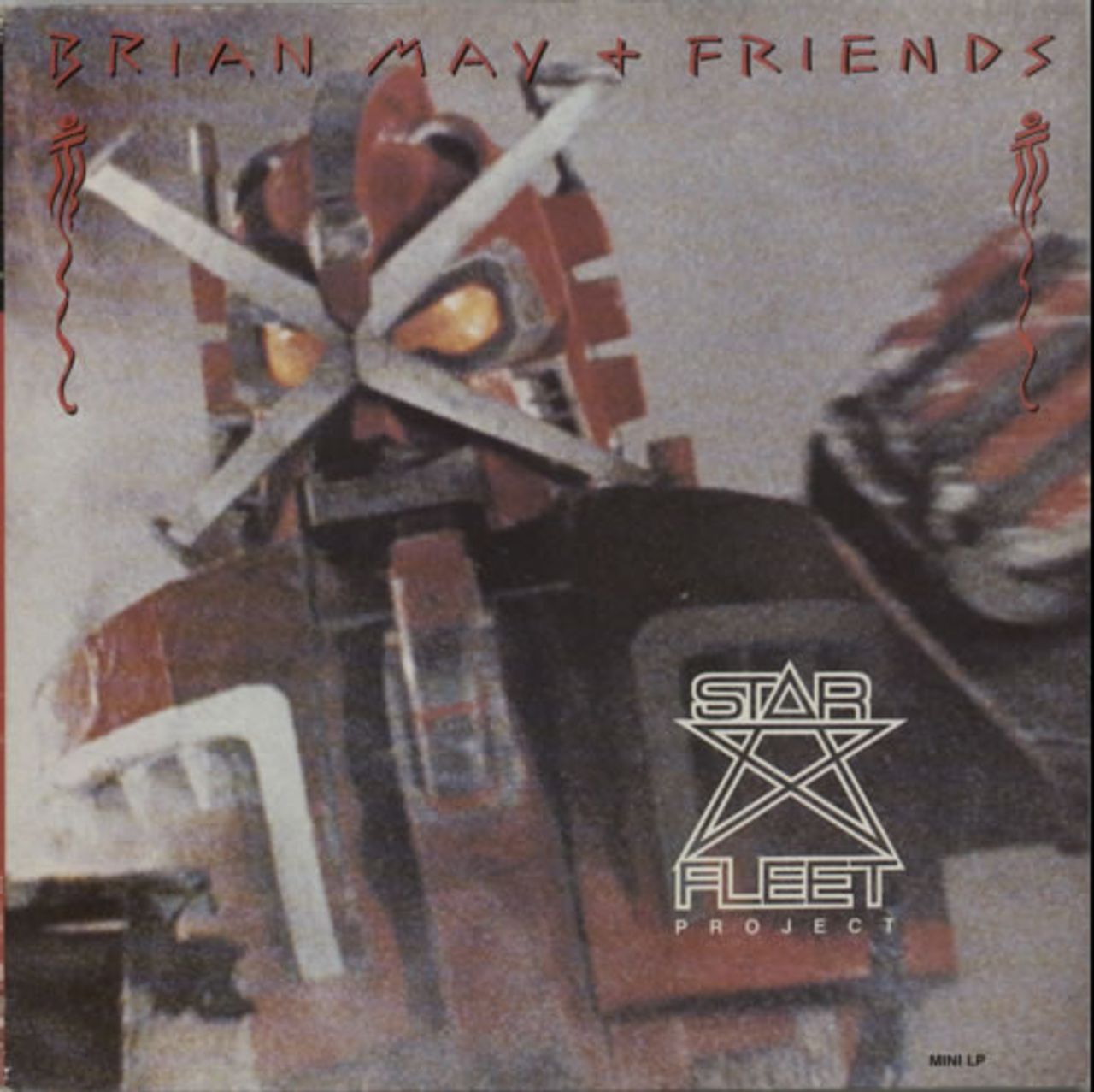 BRIAN MAY & FRIENDS Starfleet Project (1983 UK 3-track vinyl mini-LP, featuring the talents of Edward Van Halen, Alan Gratzer, Phil Chen and Fred Mandel as well as Brian May and includes Starfleet, Blues Breaker and Let Me Out. This gem of a collaboration comes in a glossy picture sleeve with notes by Brian May on the reverse, along with a card picture inner. The sleeve displays minimal shelfwear with a tiny top split, whilst the vinyl shows little evidence of play SFLT1078061)