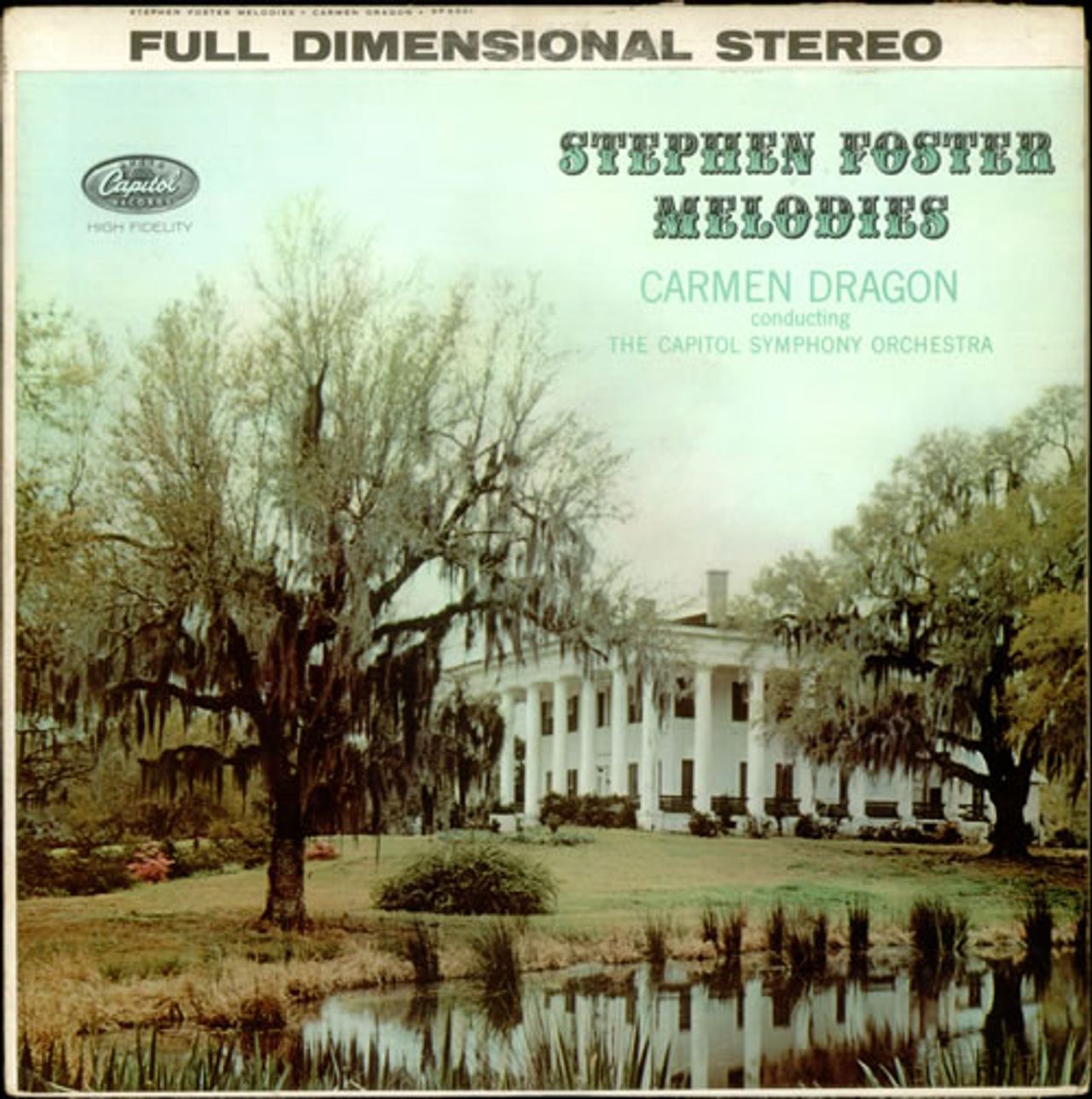 CARMEN DRAGON conducting THE CAPITOL SYMPHONY ORCHESTRA Stephen Foster Melodies (Late 1950's Deleted US Capitol Living Stereo label vinyl LP. Performed by the Capitol Symphony Orchestra conducted by Carmen Dragon. Pasted picture sleeve with extensive liner notes. SP8501)