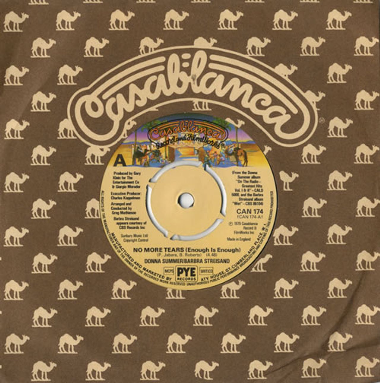 DONNA SUMMER with BARBRA STREISAND No More Tears (Enough Is Enough) (Classic 1979 UK 7" vinyl single with intact four prong centre, also including Lucky, Casablanca company die-cut paper sleeve CAN174)