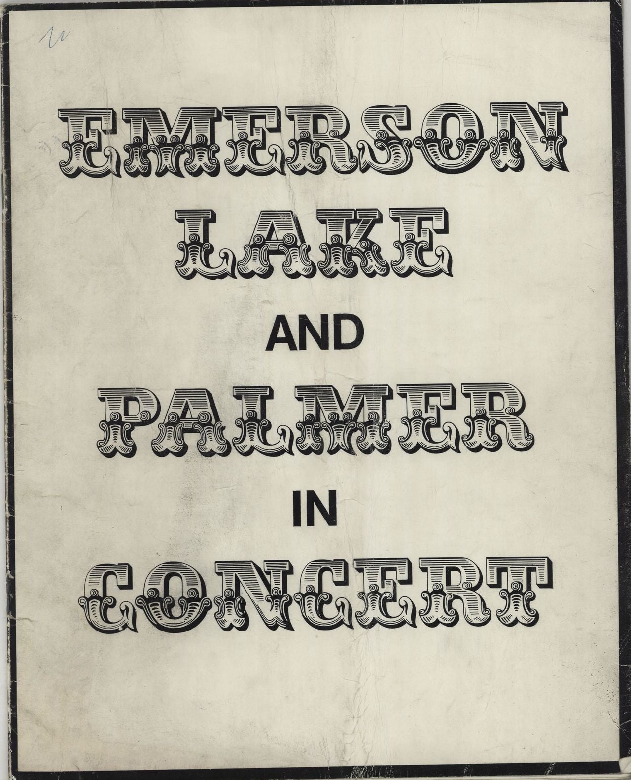 EMERSON LAKE & PALMER In Concert (Rare 1970 UK 12-page concert souvenir programme, featuring some great black & white photographs, biographical text and a list of band members at the back, black & white artist text on the cover and a blank back. This example displays some minor wear and age, overall an excellent example)