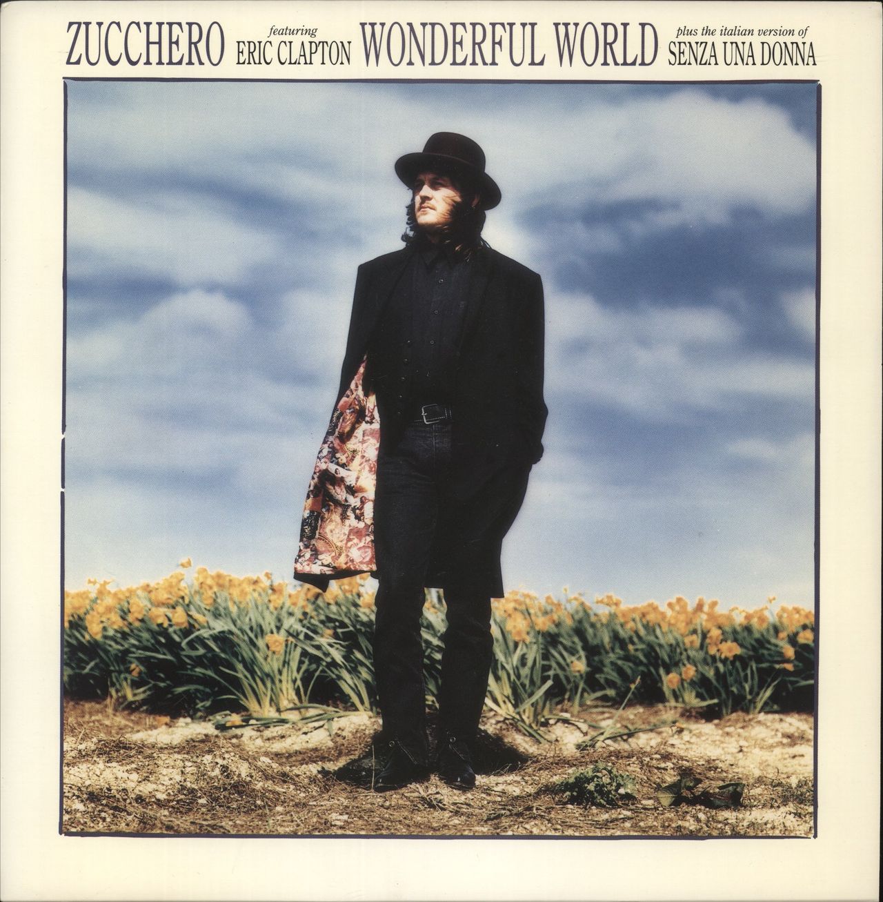ZUCCHERO feat ERIC CLAPTON Wonderful World (1991 UK 4-track 12" vinyl single, featuring the Sen Una Donna - Italian Version, Con Le Mani & Non Ti Sopporto Piu. The picture sleeve shows minimal wear & the vinyl appears barely played LONX300)