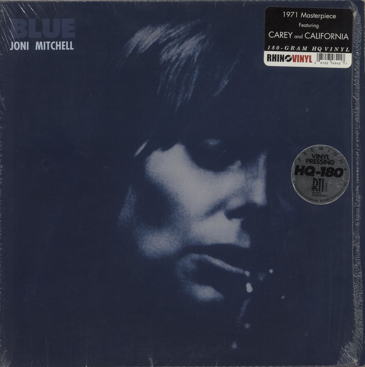 JONI MITCHELL Blue (2007 US limited edition 10-track LP pressed on Premium HQ-180 180gram VIRGIN VINYL at RTI; originally released in 1971, this album is often considered Joni's best work, superbly remastered by Kevin Gray & Steve Hoffman, this is the closest you will ever be able to get to the sound of the true master tape! Housed in a high quality pasted gatefold picture sleeve with it's open shrink still intact with the two hype-stickers affixed to the front. The sleeve shows minimal wear, whilst the vinyl remains in Near Mint condition with no signs of play to see)