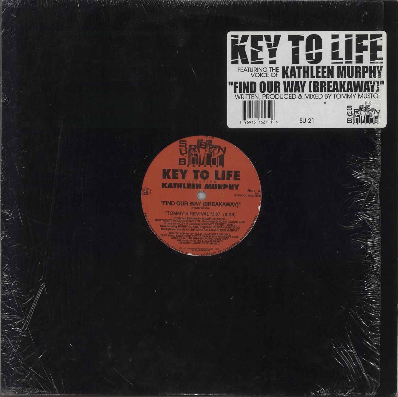 KEY TO LIFE featuring the voice of KATHLEEN MURPHY Find Our Way (Breakaway) (1995 US 3-track 12" vinyl single, includes Tommy's Revival Mix, Praise Singers Dub and A Cappella, title-stickered plain die-cut sleeve. The sleeve is still in its opened shrinkwrap and the vinyl is Near Mint SU-21)