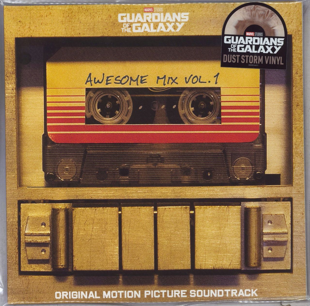MARVEL Guardians Of The Galaxy: Awesome Mix Vol. 1 - Dust Storm Vinyl (2023 UK/EU limited edition 12-track LP reissue of the 2014 original motion picture soundtrack of the film based on the Marvel Comics superhero team, now pressed on Dust Storm Vinyl; including classic tracks by David Bowie, Jackson 5, The Runaways, Norman Greenbaum and 10CC. Picture sleeve with hype sticker. ALthough not sealed, this copy romains fully Near Mint. A stunning copy!)