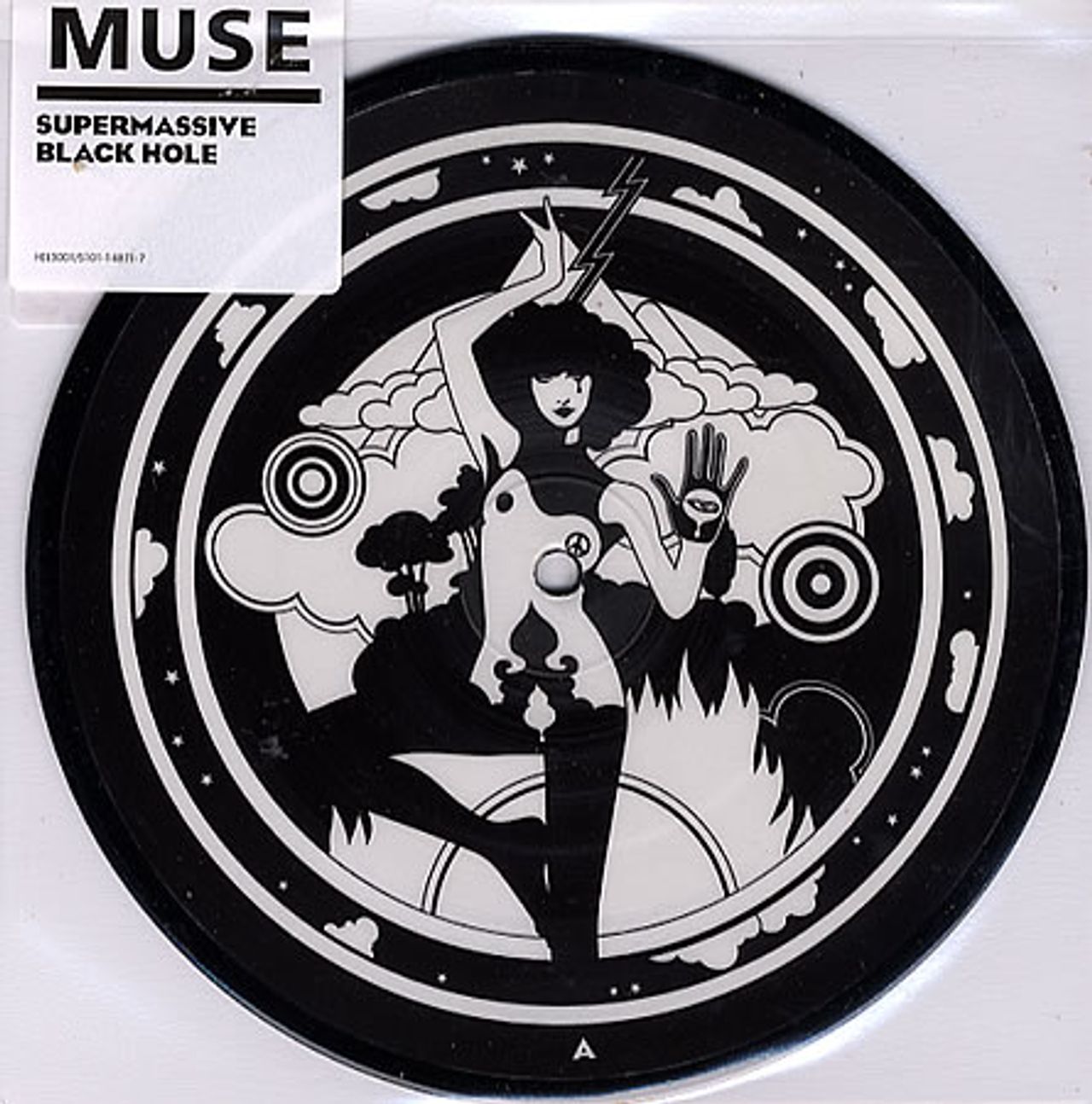 MUSE Supermassive Black Hole (2006 UK limited edition 7" Picture Disc single, taken from their Black Holes & Revelations album, also including the previously unreleased Crying Shame, sticker-sealed clear PVC sleeve HEL3001)