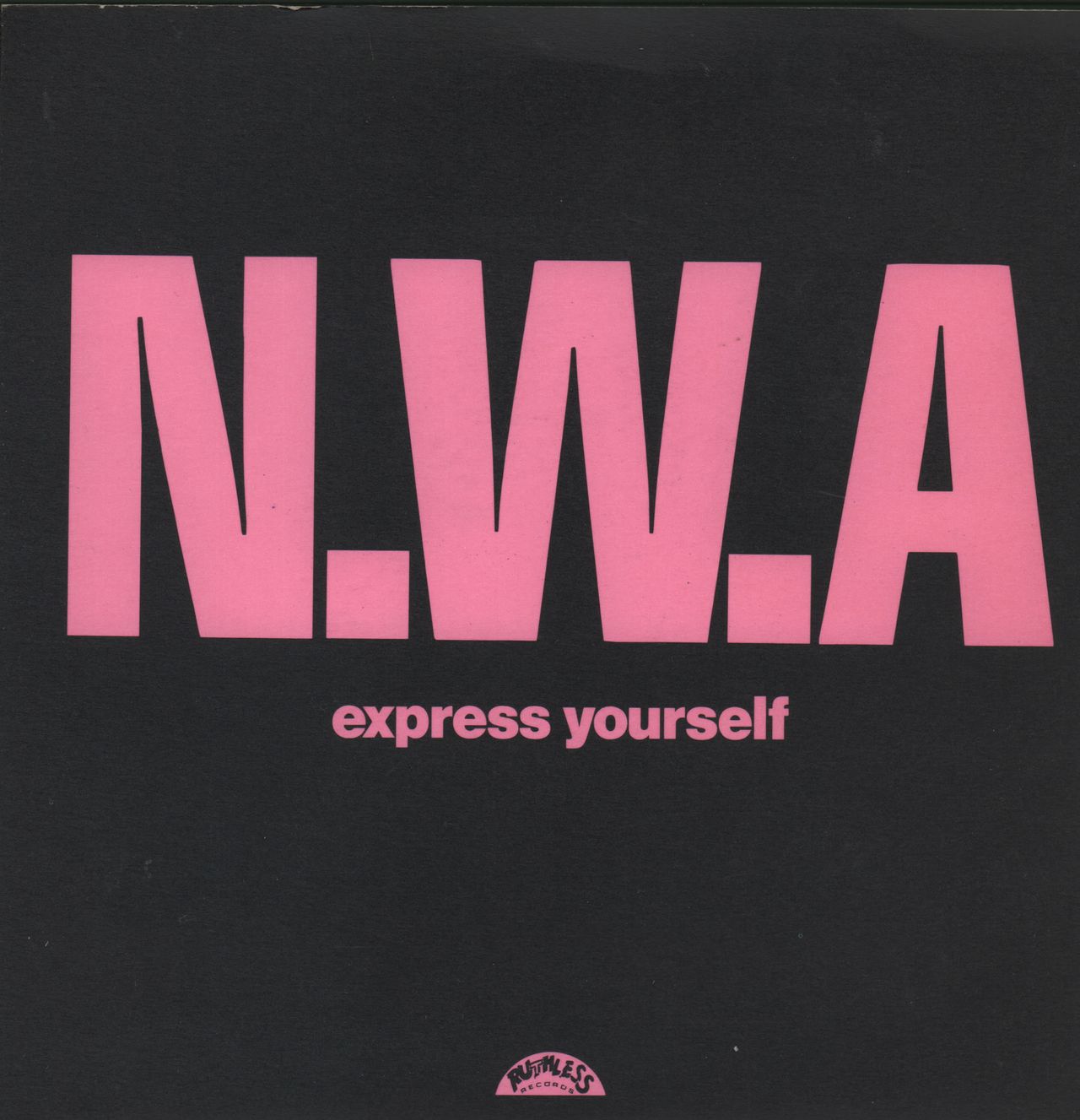 N.W.A. Express Yourself (1989 UK solid centre 7" vinyl single which samples the [then] obscure Charles Wright & The Watts 103rd Street Rhythm Bands funk classic, also includes the equally superb Straight Outta Compton, black & neon pink titledcard sleeve. The sleeve shows minimal wear & the vinyl looks barely played BRW144)