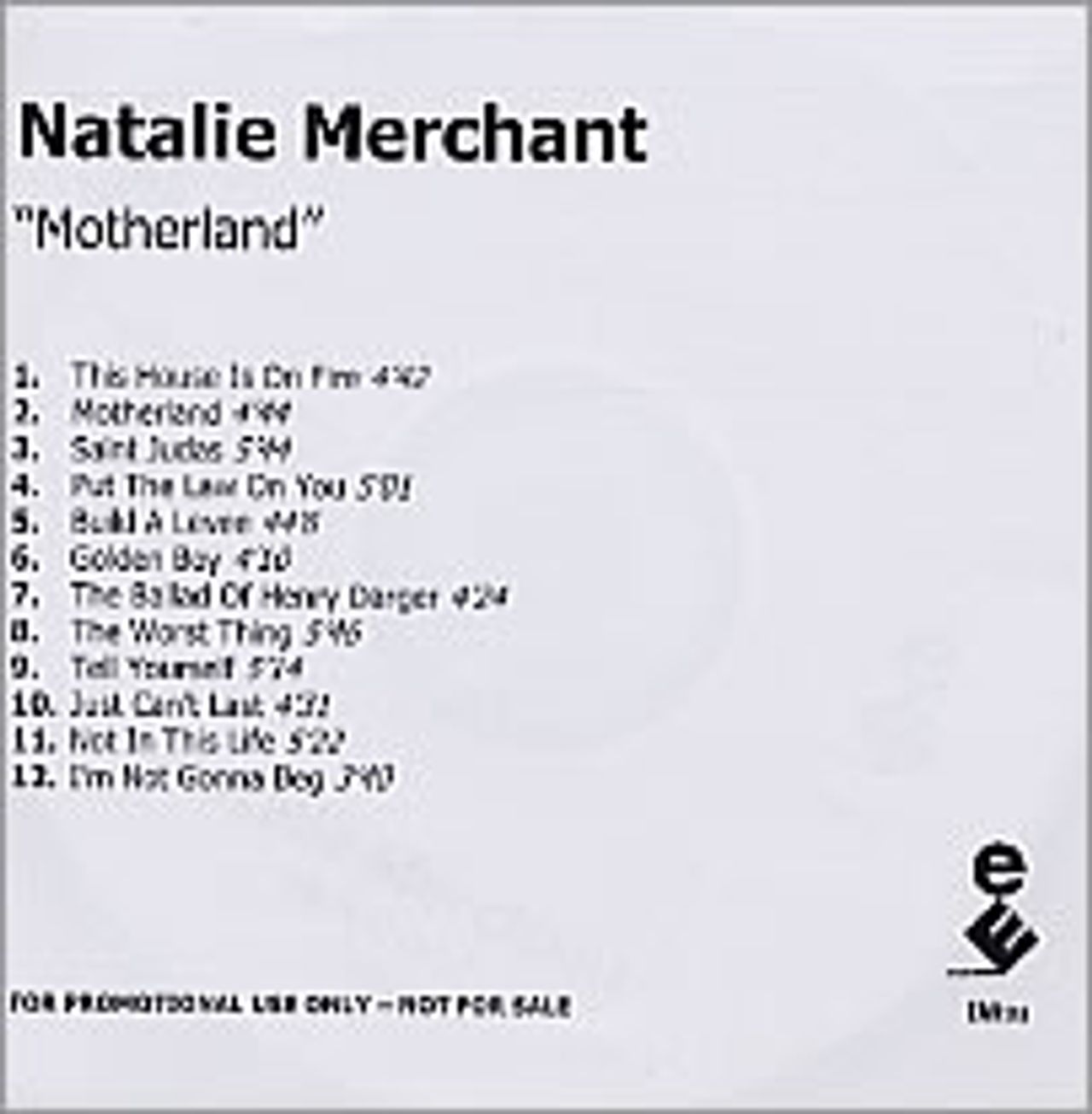 Natalie Merchant Motherland UK Promo CD-R acetate