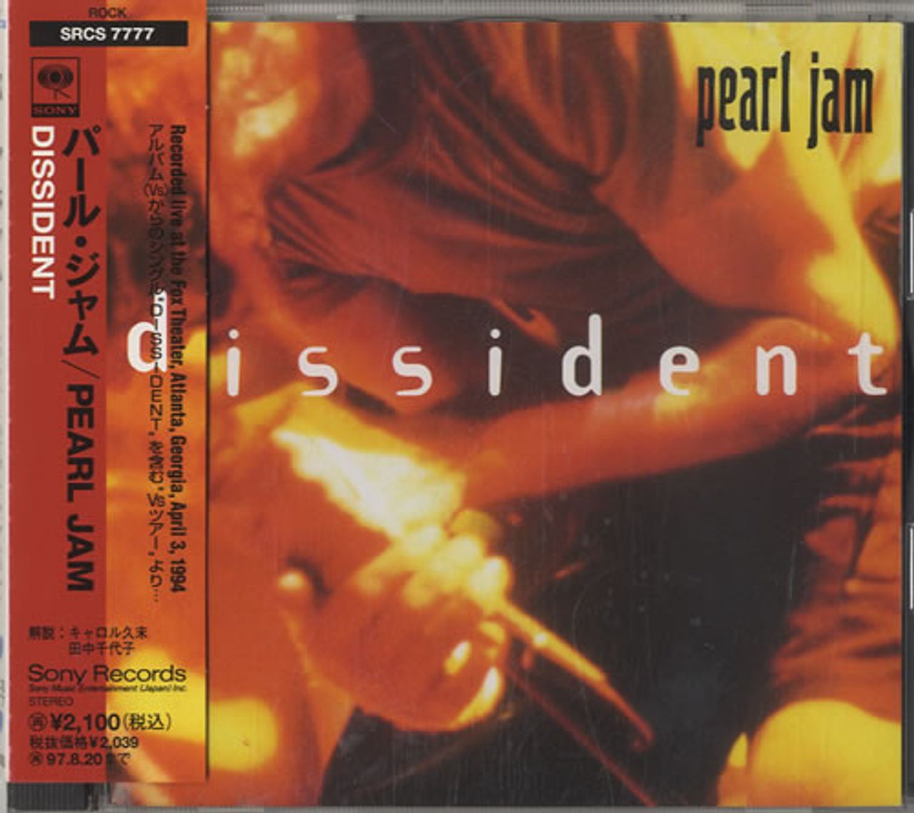 PEARL JAM Dissident (1994 Japanese 7-track promo sample CD EP issued to radio stations and reviewers ahead of the actual release, including 6 live tracks recorded at the Fox Theater on the 3rd April 1994; custom stamped inner rim on the disc andpromo stickered back insert, complete with picture sleeve & obi-strip SRCS-7777)