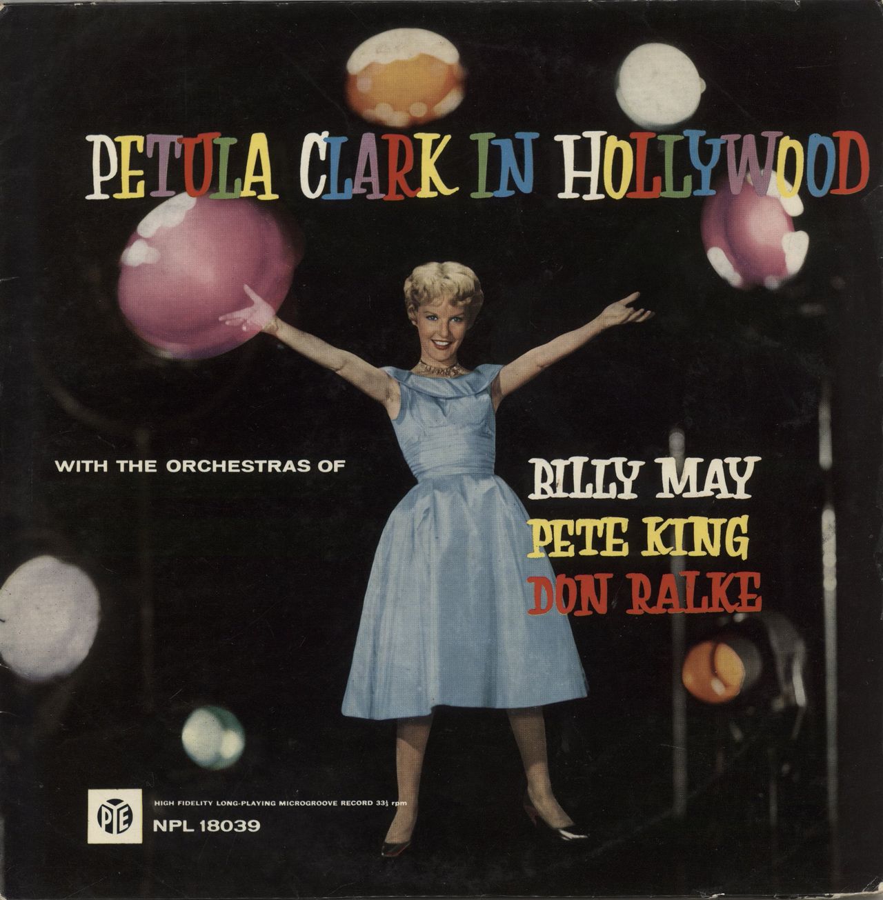 PETULA CLARK Petula Clark In Hollywood (Rare 1959 UK 12-track mono LP on the plum & silver Pye Nixa label, housed in a stunning front laminated flipback picture sleeve with the original die-cut 'Keep Your Eye On Pye' company inner. The sleeveshows light wear with yellowing to the unlaminated reverse, whilst the vinyl is Excellent with just a few faint light signs of play NPL18039)