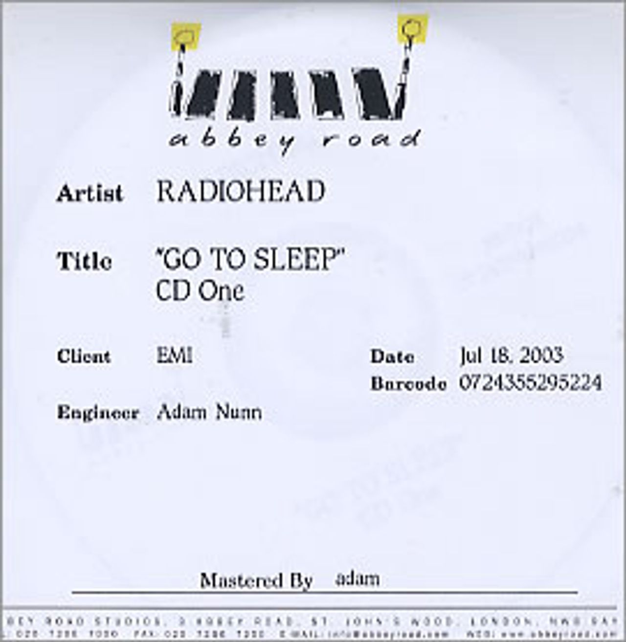 housed in generic Abbey Road Mastering Sleeves with production