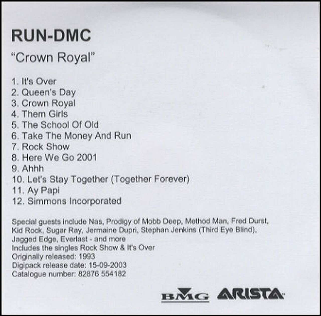 RUN DMC Crown Royal (Official 2003 UK BMG Arista label 12-track