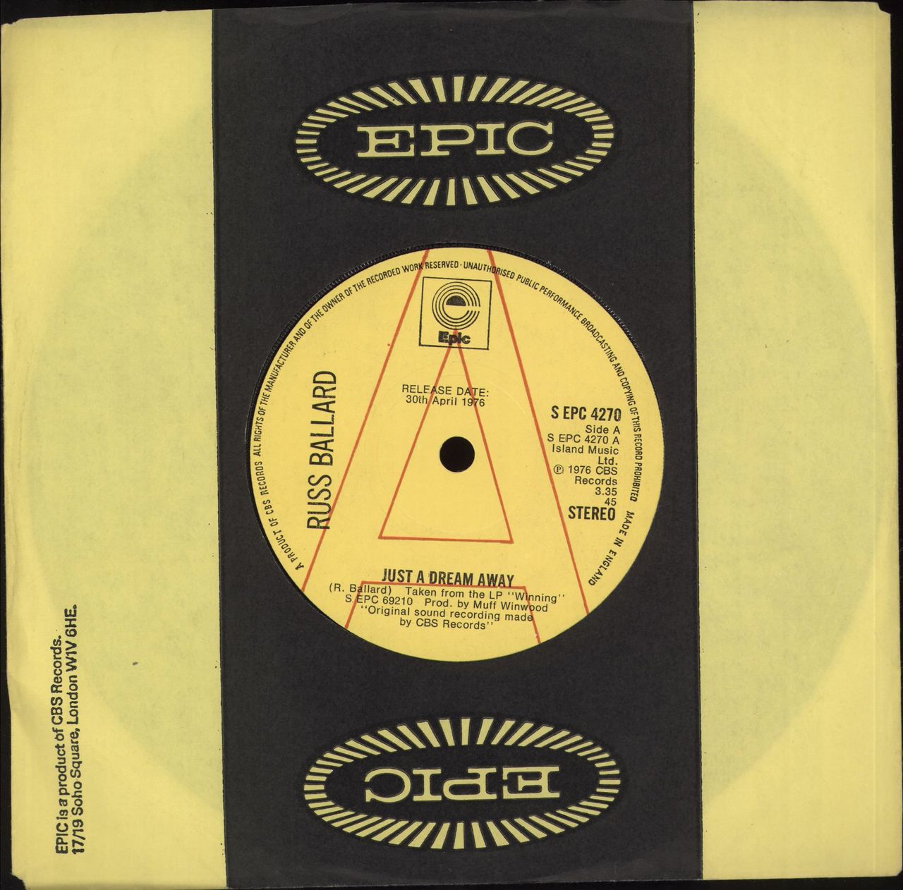 RUSS BALLARD Just A Dream Away (1976 UK 'A' label
