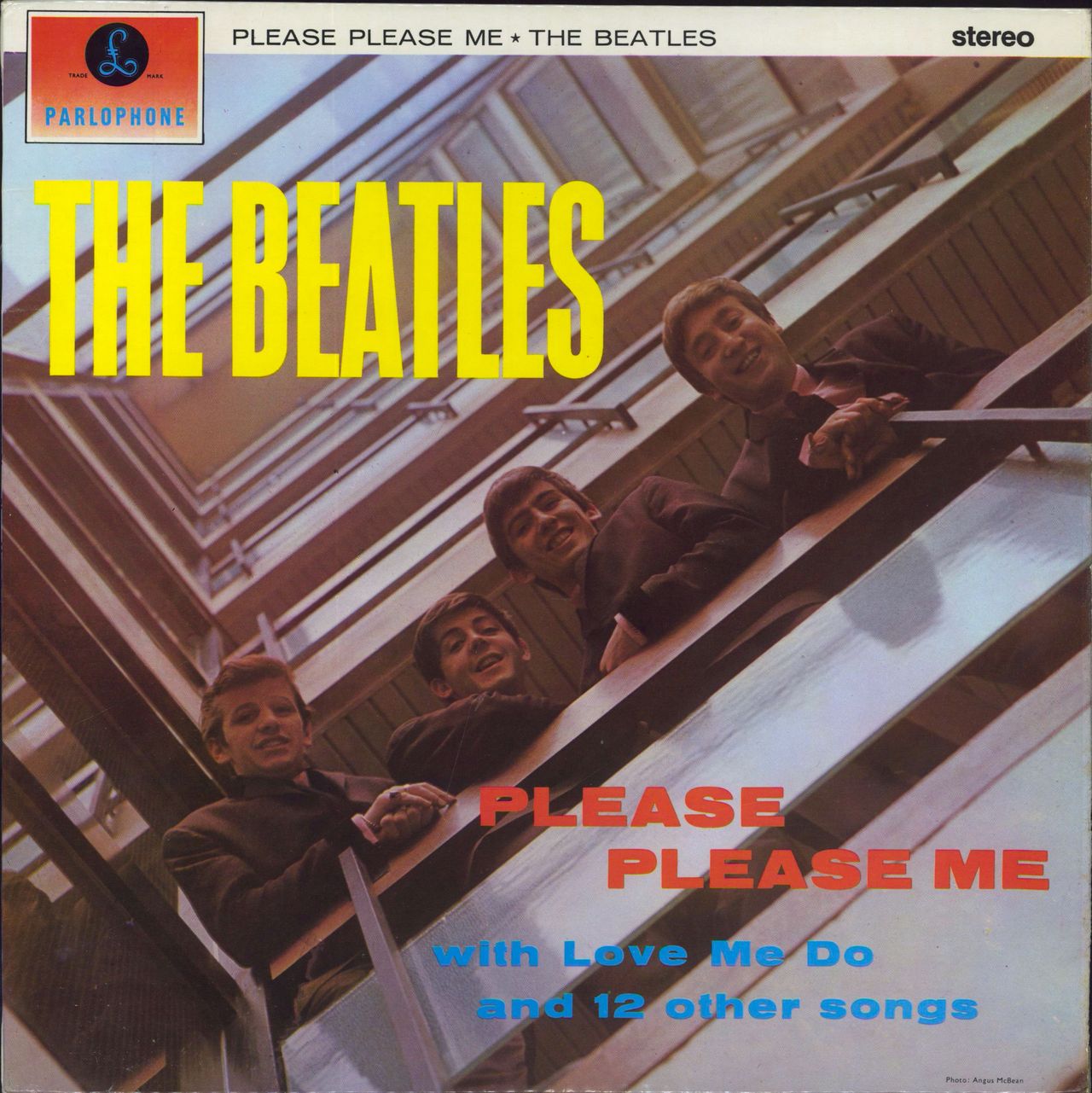 THE BEATLES Please Please Me (1965 UK seventh press of the 1963 UK 14-track stereo vinyl LP, on the black & yellow Parlophone label with 'Gramophone Co' label credits, & 'Sold In The UK' text, front laminated flipback picture sleeve with smallsolid 'stereo' logo on the front, Garrod & Lofthouse 'Patents Pending' text on the lower back flip & 'Emitex' inner PCS3042)