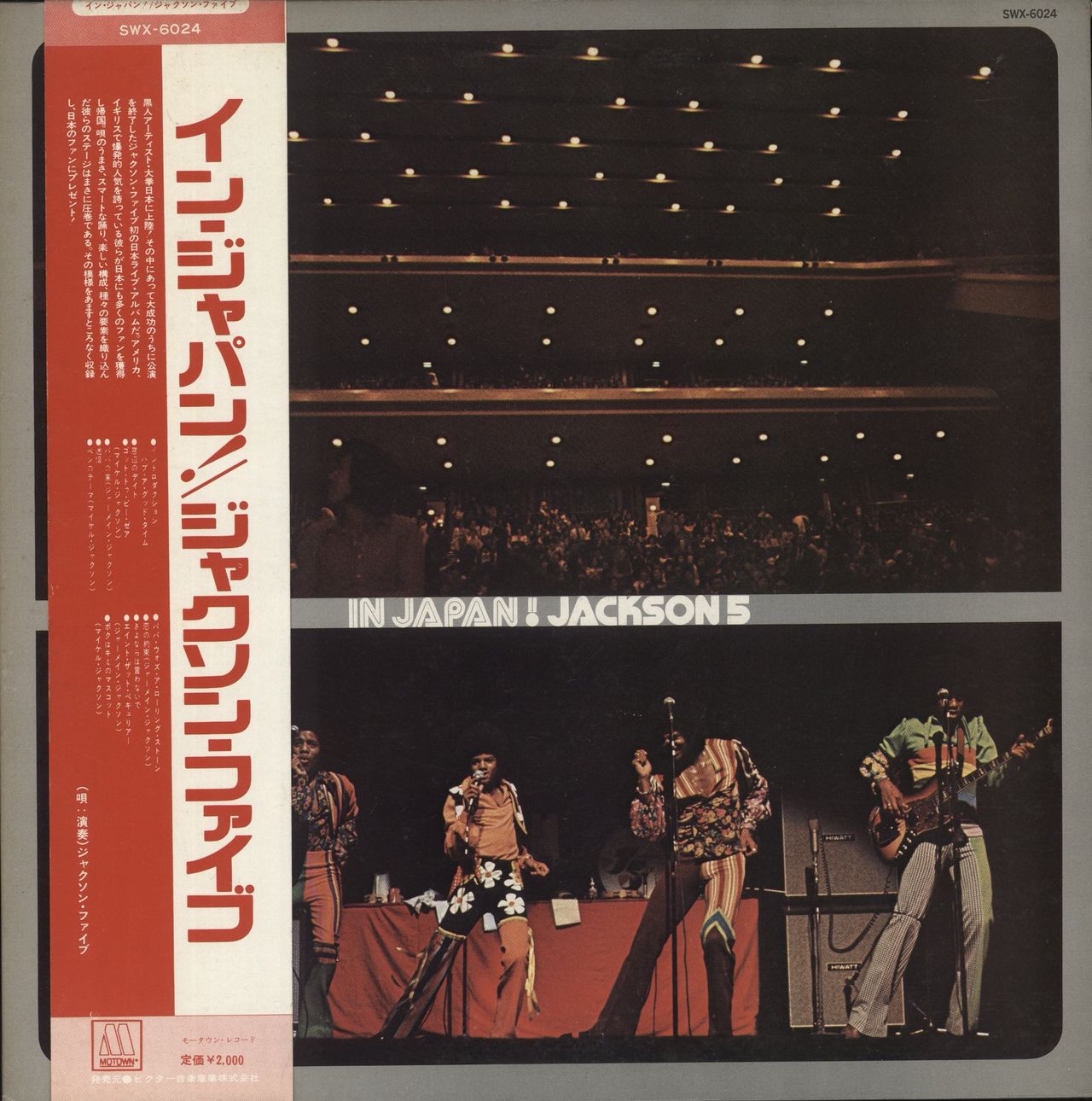THE JACKSON FIVE In Japan! (Very rare original 1973 Japanese only Tamla Motown advance promotional 11-track stereo vinyl LP, with incorrect song titles printed on custom white labels, which were later corrected for the commercial release, gatefold pasted picture sleeve complete with large fold-out poster, four-page Japanese/lyric inner, red and white obi-strip. The sleeve shows minimal wear and the vinyl is Near Mint SWX-6024)