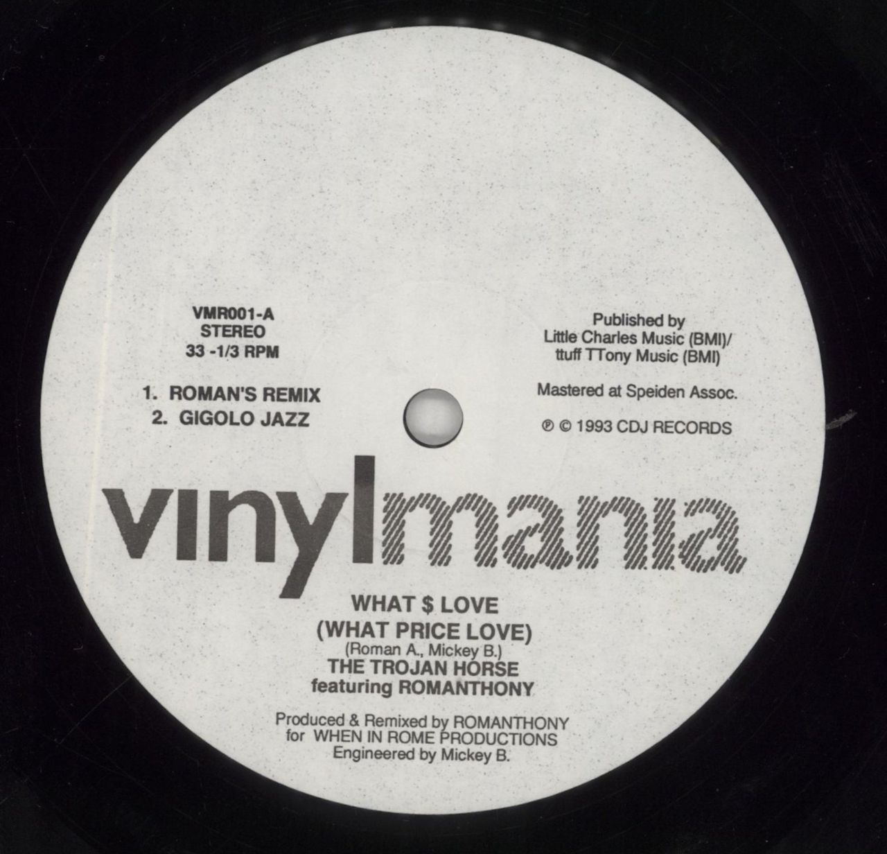 TROJAN HORSE (90S) What $ Love [What Price Love] (1993 US 4-track 12" vinyl single. Including Roman's Remix, Gigolo Jazz version, Westside Highway Remix and Koldkash Mix. Plain die-cut company sleeve VMR001)
