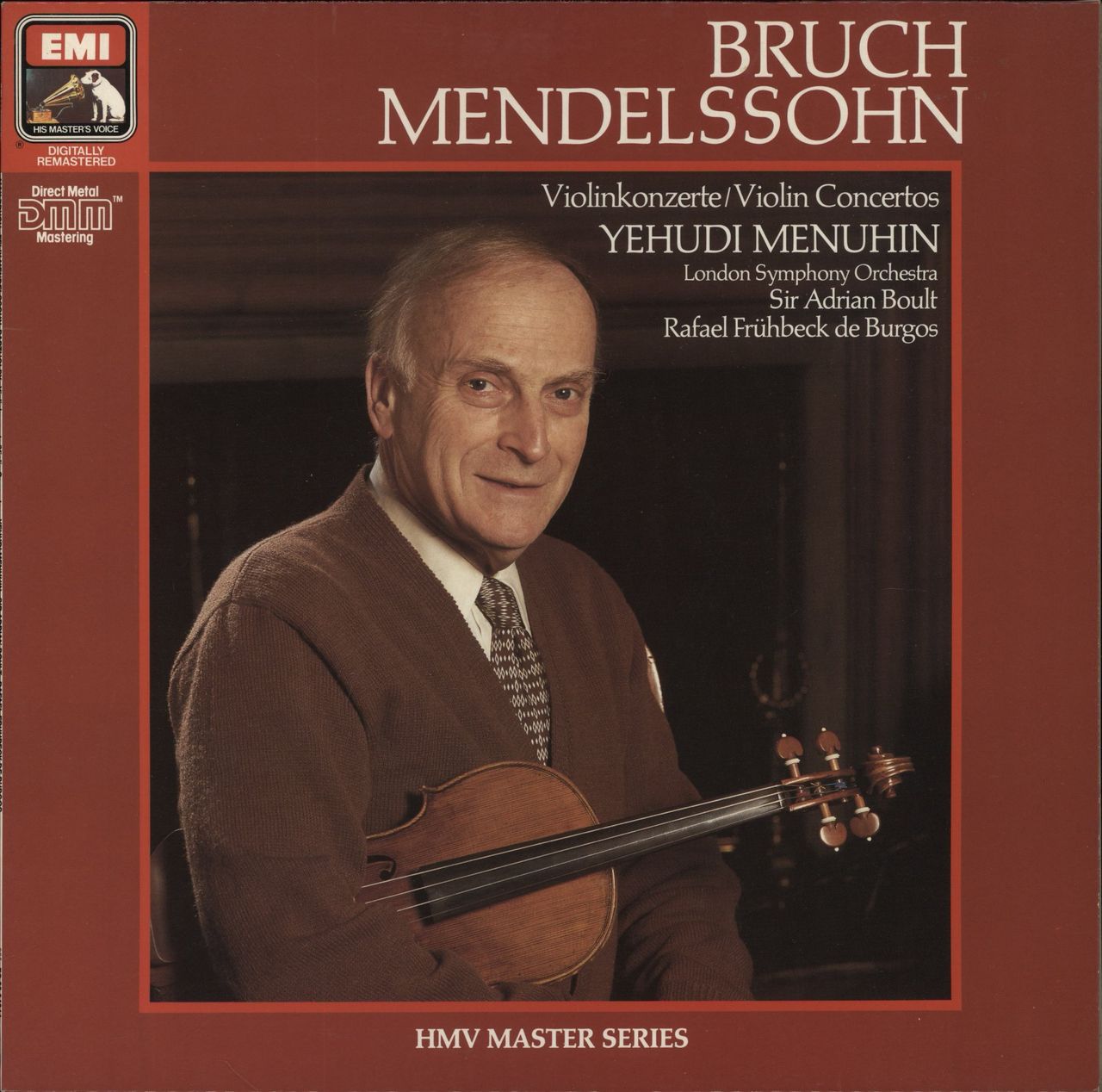 BRUCH / MENDELSSHON Violinkonzerte / Violin Concertos (1985 German Direct Metal Mastering 5-track vinyl LP, with Yehudi Menuhin and the London Symphony Orchestra conducted by Sir Adrian Boult and Rafael Fruhbeck de Burgos, fully laminated picture sleeve)