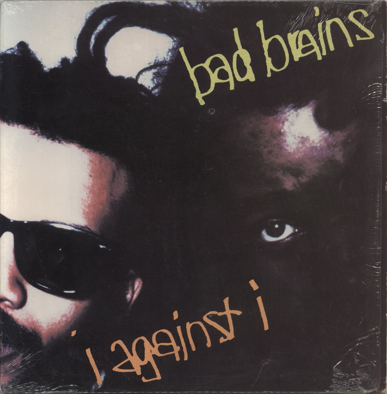 BAD BRAINS I Against I (1986 US 10-track vinyl LP on regular black vinyl, the third longplayer from the legendary punk/reggae combo, mixing American hardcore punk with funk, soul, & heavy metal [no reggae on this one!], glossy picture sleeve with illustrated lyric insert. The sleeve is in the open factory shrink and shows a little wear to the opening edge. The vinyl is Very Good and reveals a couple of notable hairlines on side A but this has been played through and has no impact on play SST065)