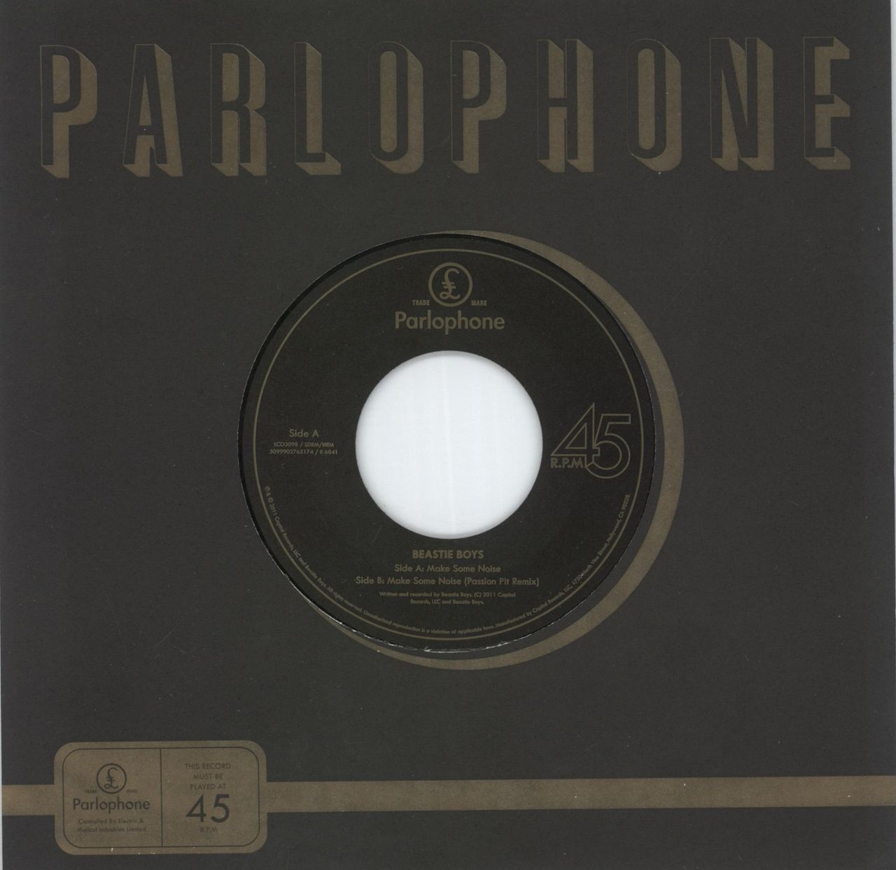 BEASTIE BOYS Make Some Noise (2011 UK Record Store Day exclusive limited edition 7" vinyl single, also including Make Some Noise [Passion Pit Remix], in a vintage-style paper Parlophone die-cut company sleeve. The sleeve shows very minor ringwear, whilst the vinyl shows no signs of play, just a minute amount of cosmetic clouding from reacting with the PVC sleeve, which does not affect play R6841)
