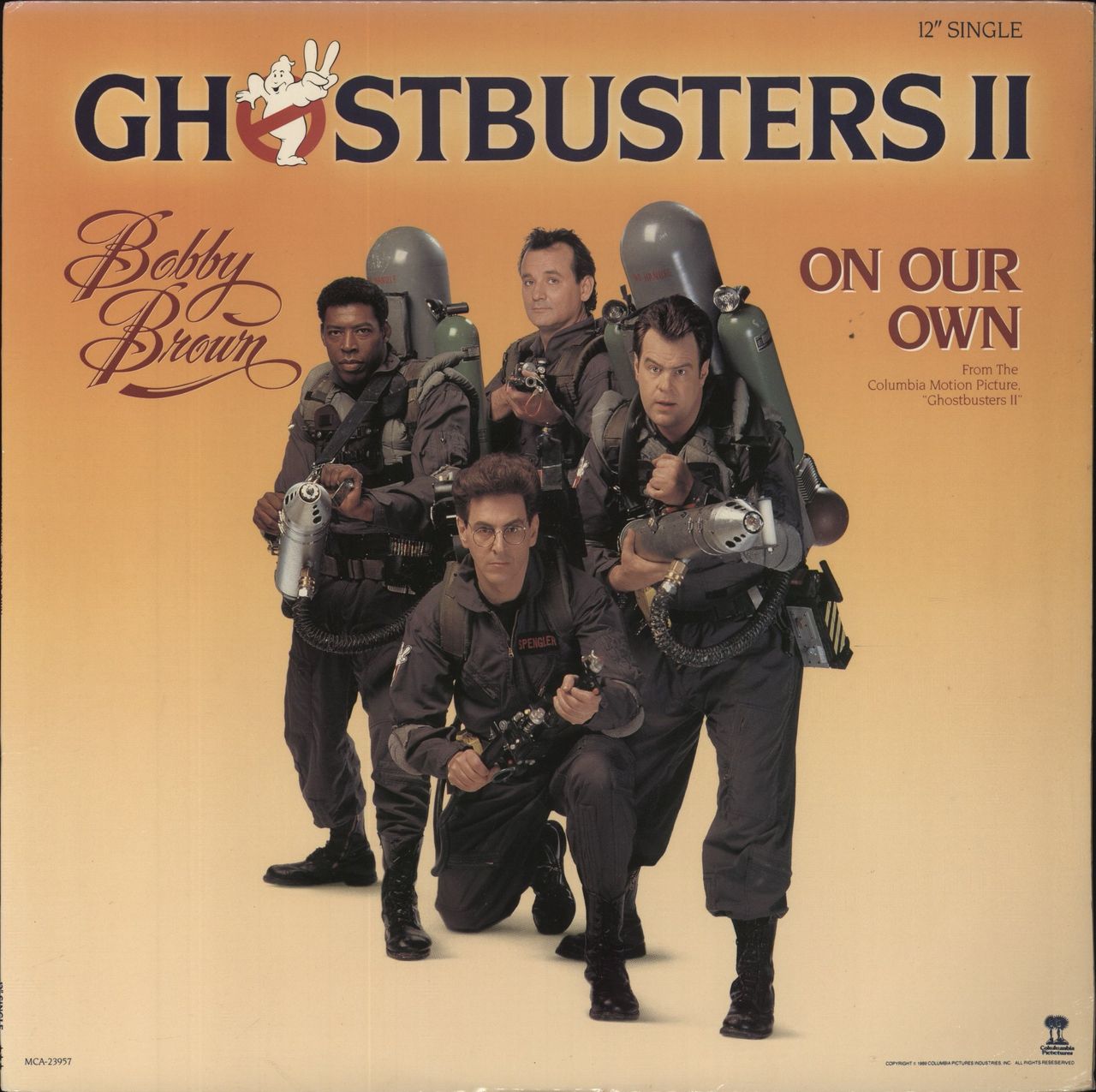 BOBBY BROWN On Our Own (1989 US 3-track 12" vinyl single, the theme to the second Ghostbusters outing, includes Extended Club Version, Radio Edit and Instrumental, picture sleeve. The sleeve shows light wear and the vinyl appears barely playedMCA-23957)