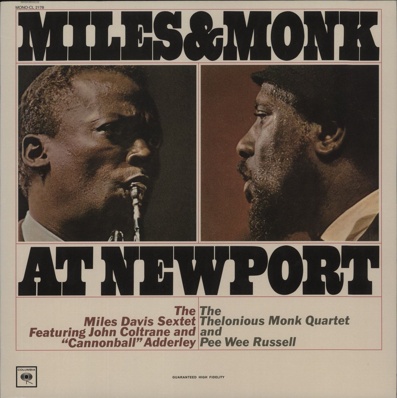 THE MILES DAVIS SEXTET & THE THELONIOUS MONK QUARTET Miles & Monk At Newport (2014 US remastered 6-track MONO LP pressed on 180gram Vinyl at RTI & cut at Cohearent Audio by Kevin Gray, recorded live at the Newport Jazz Festival [Miles in 1958 & Monk in 1963]. Housed in a deluxe replica picture sleeve, the sleeve & vinyl are Near Mint)
