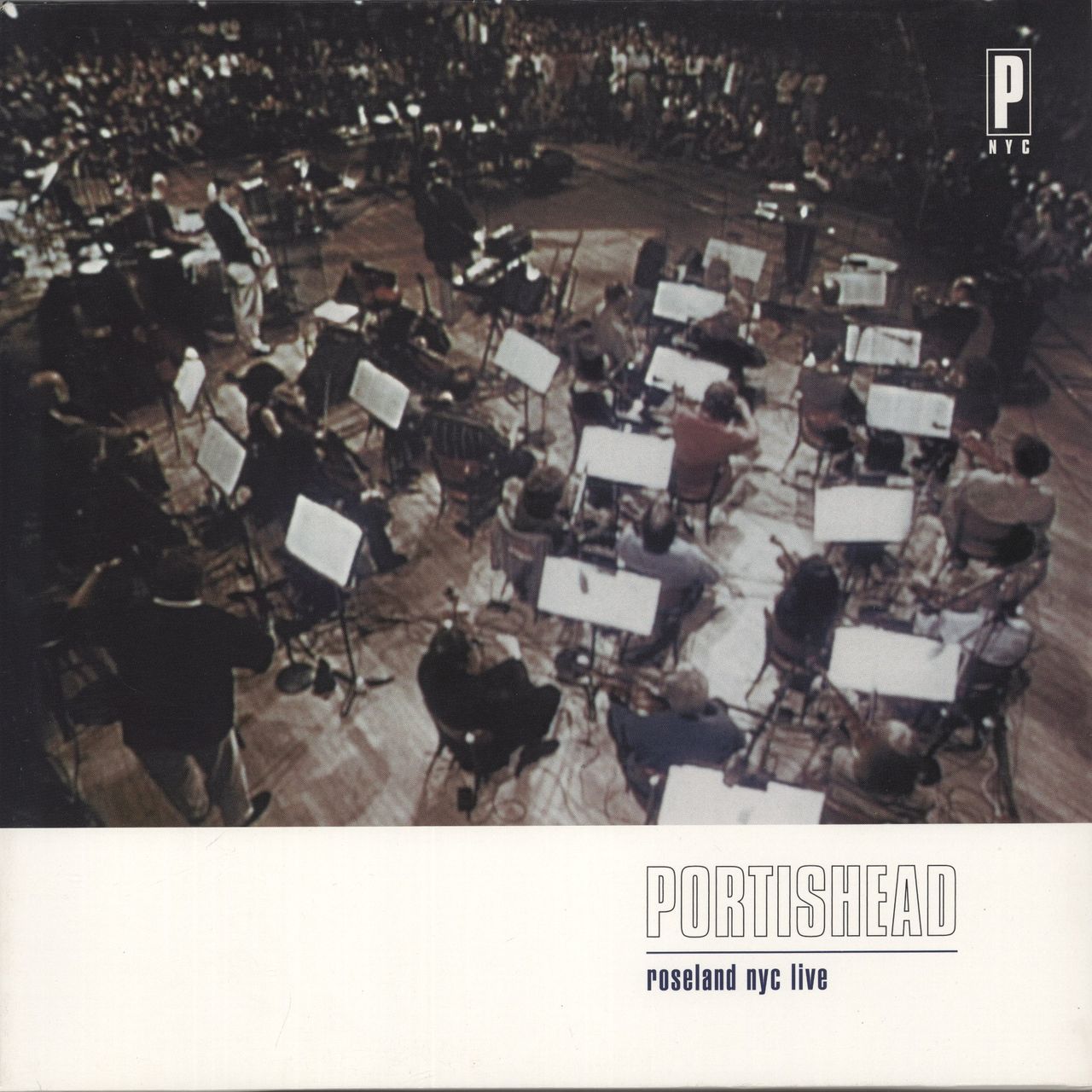 PORTISHEAD Roseland NYC Live (2008 UK/EU issue of the 1998 double LP pressed on 180gram Vinyl, comprising eleven of their finest songs captured live & reworked with full string & horn sections & DJ input from Andy Smith - Their crowningachievement! Housed in a wide-spined single-pocket picture sleeve complete with fold-out poster, the sleeve is Excellent [1" hairline fracture in top edge] & the vinyl is Near Mint)
