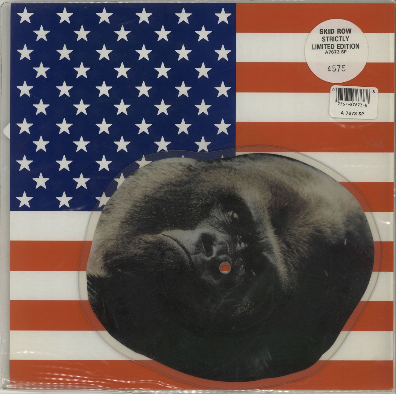 SKID ROW Monkey Business (1991 UK limited edition 'gorilla' shaped 7" Picture Disc single, also includes Slave To The Grind, numbered stickered PVC sleeve with 'star spangled banner' card insert & plinth A7673SP)