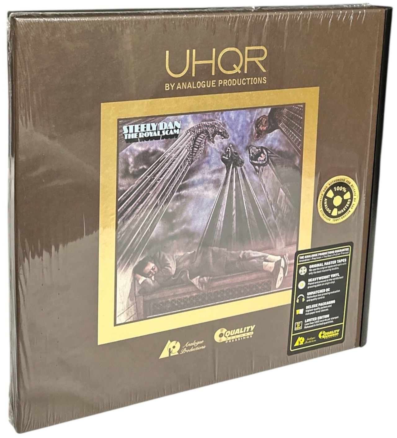 STEELY DAN The Royal Scam (2024 US UHQR limited edition 180-gram 9-track LP pressed by Analogue Productions on 200-gram Clarity Vinyl® – an audiophile-grade reissue of Steely Dan’s 1976 jazz-rock masterwork. Features standout cuts including Kid Charlemagne, The Fez, and Don't Take Me Alive. Mastered by Bernie Grundman from the original analog master tape and pressed at QRP using the Ultra High Quality Record process for exceptional clarity, warmth, and dynamic range.The definitive edition of this darkly cinematic classic, housed in a deluxe tip-on gatefold jacket with a strikingly detailed reproduction of the original artwork. Although unsealed, this example remains in stunning near mint condition still in its original open shrink. Highly recommended for serious Steely Dan collectors and audiophile listeners alike!)
