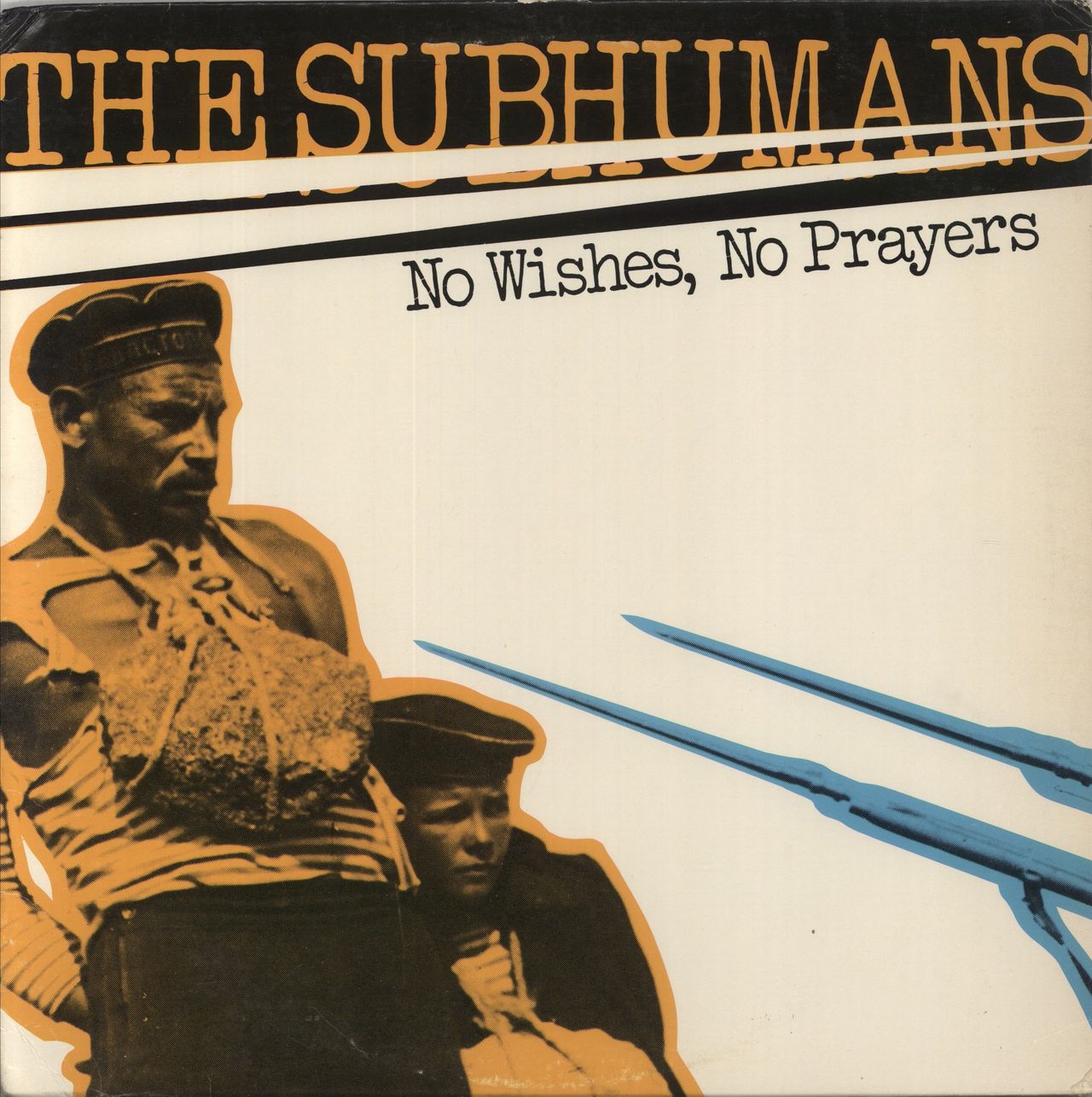 SUBHUMANS CANADA No Wishes, No Prayers (Scarce 1983 US 12-track vinyl LP. The second album from the Canadian punk band, released after the band's break up [the first one]. Picture sleeve. The sleeve grades as Very good and has a split to the top edge and shows some corner/edge wear with minbor scuffing. The vinyl is Excellent displays one or two superficial marks and only light signs of play SST018)***Limited to only 1000 copies***