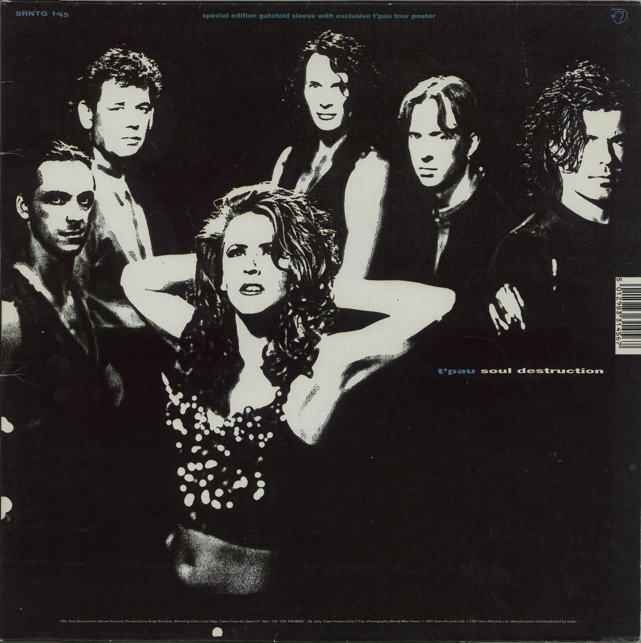 T'PAU Soul Destruction (1991 UK limited edition 3-track 12" vinyl single featuring Remix and Album Version plus Dirty Town. Housed in a 'Special Edition' gatefold picture sleeve with exclusive 30" x 20" tour poster. The sleeve displays a little shelfwear to the edges however, the vinyl remains in barely played condition SRNTG145)