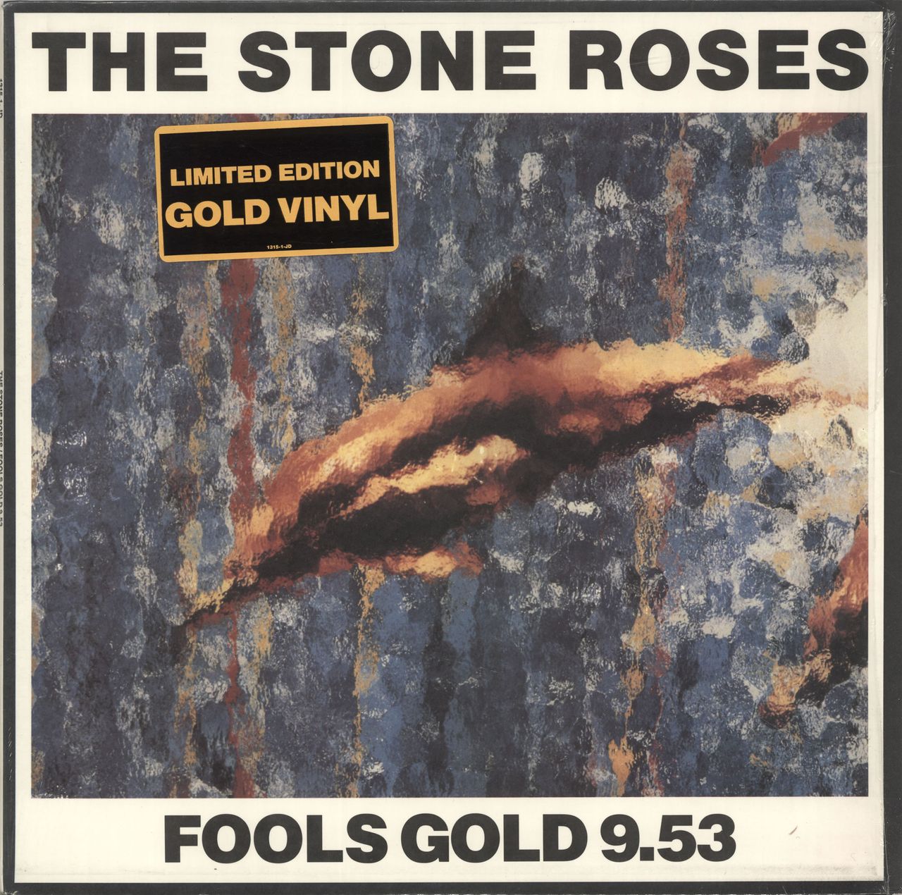 STONE ROSES Fools Gold (Archive Quality 1990 US Limited Edition 3-track 12" single pressed on Gold Translucent Vinyl, including both the 9.53 & 4.15 versions plus What The World Is Waiting For. The picturesleeve has no deletion cuts & is still in the original open shrink with the rare gold hype sticker attached. The vinyl is near 'as new')