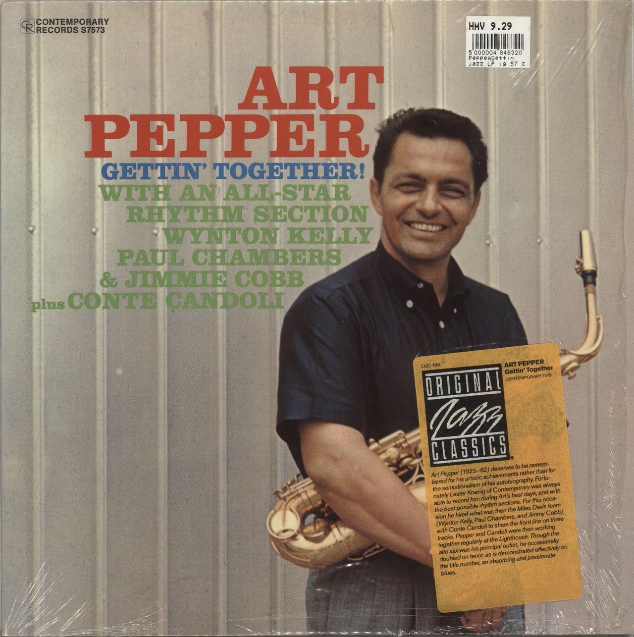 ART PEPPER Gettin' Together! (1984 US issue of the classic 1957 7-track stereo LP, also featuring Conte Candoli on trumpet, Wynton Kelly on piano, Paul Chambers on bass & Jimmie Cobb on drums. The picture sleeve isstill in its opened shrinkwrap with the hype sticker and store price stickers attached. The sleeve shows minimal wear and the vinyl appears barely played OJC-338)