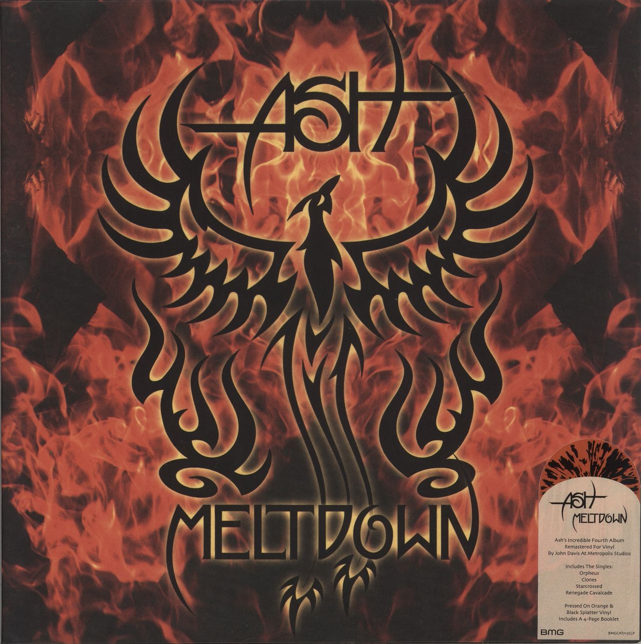 ASH Meltdown (2022 UK limited edition 11-track remastered LP pressed on Orange & Black Splatter Vinyl - their fourth album, originally released in 2004, including the singles Clones, Orpheus, Starcrossed and Renegade Cavalcade. Housed in a gatefold picture sleeve with 4-page booklet and hype-sticker attached to the front. The sleeve shows minimal wear, whilst the vinyl remains in Near Mint condition BMGCAT712CLP)