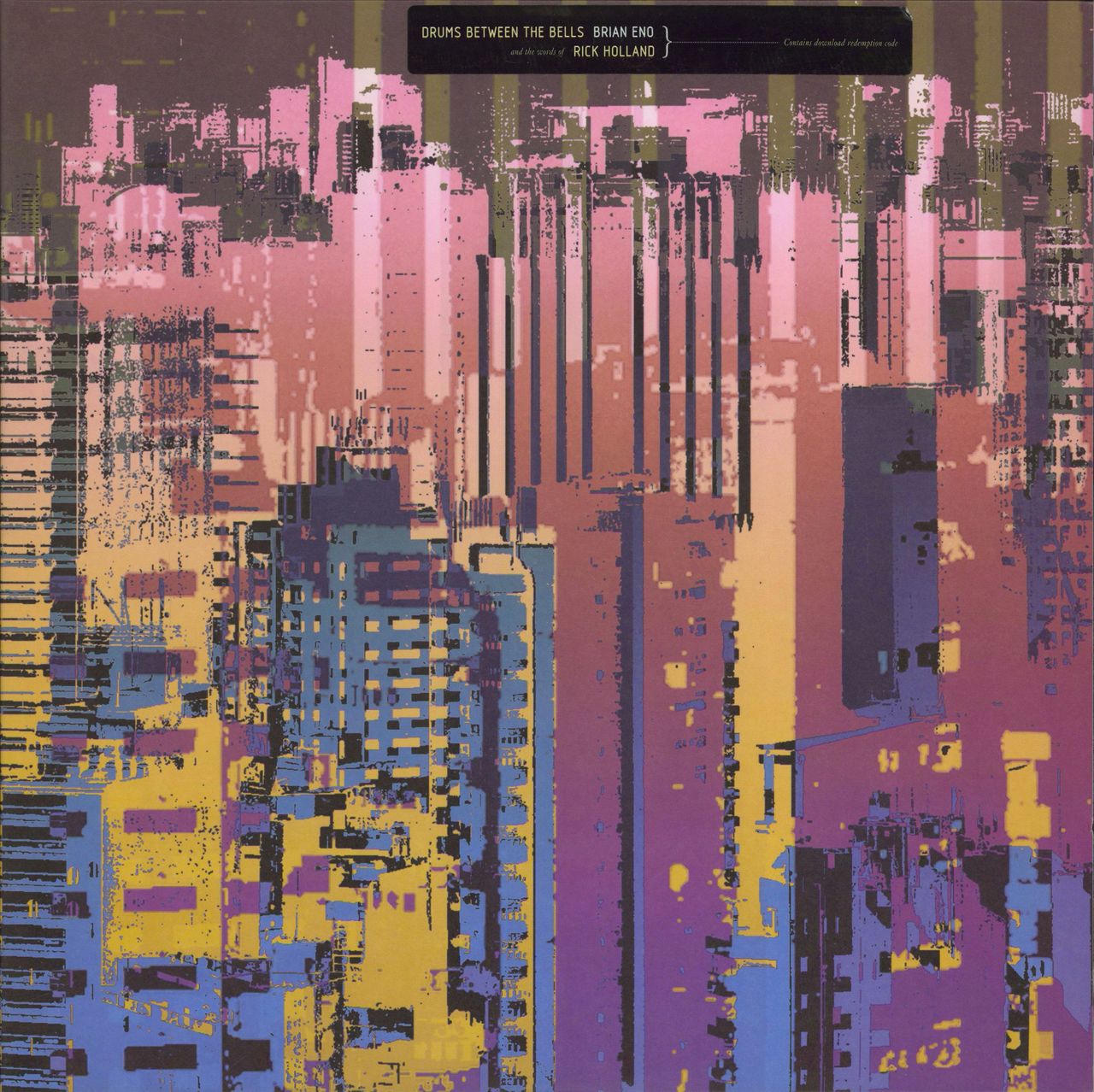 BRIAN ENO and the words of RICK HOLLAND Drums Between The Bells (2011 UK & European limited edition 15-track double vinyl LP featuring a collection of collaborative works by the legendary pioneering ambient musician & record producer togetherwith the English poet and independent artist who originally met in the late 90s during the 'Map-Making' Project. Housed in its title-stickered gatefold picture sleeve. The sleeve shows minimal wear (tiny scuffs to edges) and the vinyl appears barely played WARPLP214)