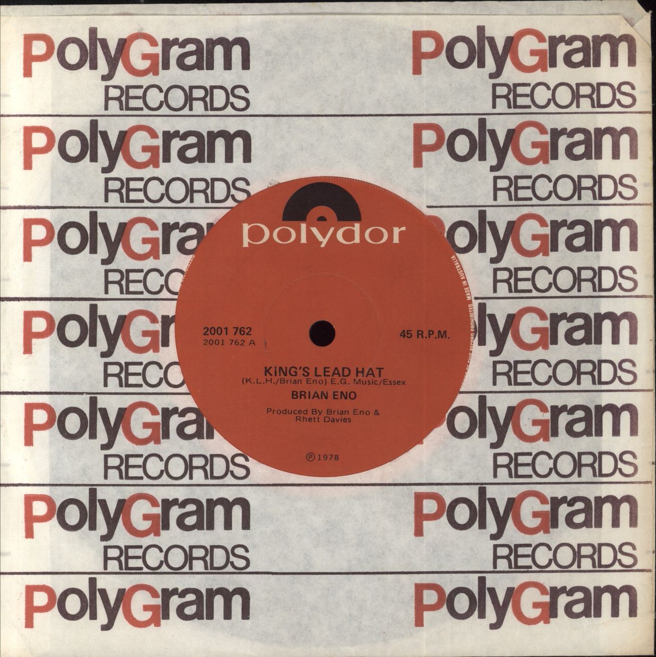 BRIAN ENO King's Lead Hat (Rare 1978 Australian solid centre 7" vinyl single, superb track taken from the 'Before & After Science' album with the title being an anagram of Talking Heads! Also includes R.A.F. - a post punk/funk sound collage created in collaboration with Judy Nylon & Patti Palladin [Snatch]. Housed in a Polygram die-cut company sleeve. The vinyl remains in Excellent condition with very few signs of play)
