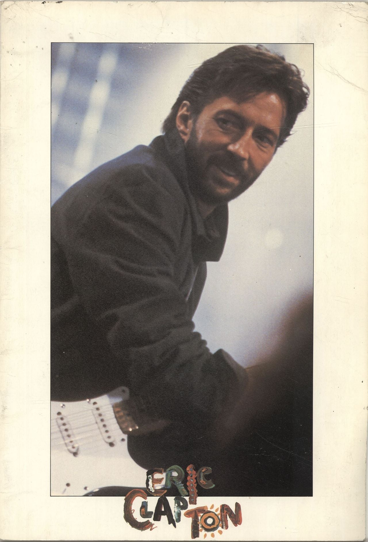 ERIC CLAPTON Behind The Sun Tour 1985 (Official 1985 UK 20-page 13" x 9" colour tour programme, includes photographs, tour dates & a Pete Frame rock family tree of Eric's bands. Colour picture cover of Eric with guitar. The cover has a few light storage marks and the inner pages show only minor wear)