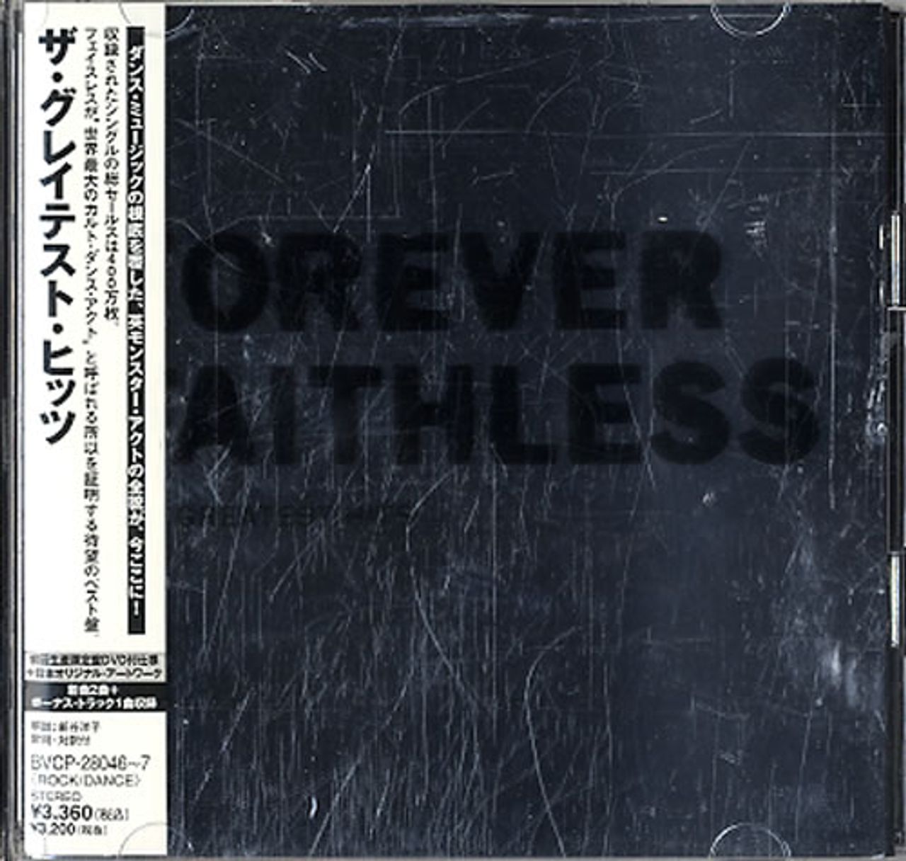 FAITHLESS Forever Faithless - The Greatest Hits (2005 Japanese issue promotional sample 2-disc set issued to radio stations and reviewers ahead of the actual release date, including a 16-track CD album featuring a collection of their classic dance hits released over the past decade and the Bonus Recordings Fatty Boo; plus the Bonus Region 0 NTSC DVD with 12 ground breaking videos with bonus feature 'Hexstatic Video Mash Up'. Custom stamped inner rim on the disc and promo stickered back insert, complete with picture sleeve, Unique metallic titled insert, Japanese lyric insert & obi-strip! BVCP-28046~7)
