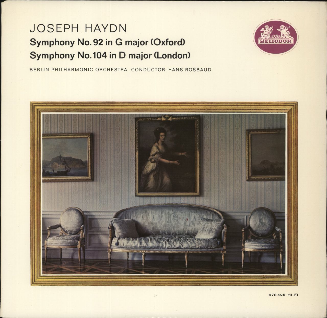 BERLIN PHILHARMONIC ORCHESTRA conducted by HANS ROSBAUD Haydn: Symphony No. 92 in G Major (Oxford) / Symphony No. 104 in D Major (London) (1970s German 2-part mono vinyl LP, glossy picture sleeve. Both the sleeve are Excellent with minimal sign of wear or play)