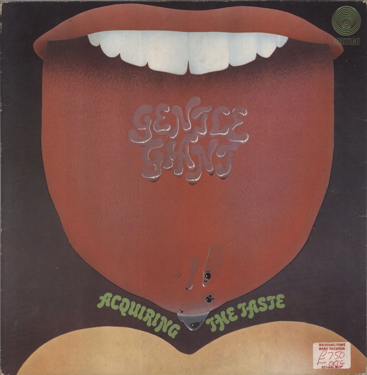 GENTLE GIANT Acquiring The Taste (Rare 1971 UK first press 8-track vinyl LP on the Vertigo 'swirl' label - This album took the band into more experimental & darker areas but is still their own recognisable sound - a rich blend of hard rock & orchestration - with hints of influences from King Crimson and Van Der Graaf Generator. Complete with the poly-lined 'swirl' inner and lyrics printed across the inside, the gatefold picture sleeve has some light shelfwear scuffing to the edges /corners and has a vintage price sticker attached to the front, while also displays some spots of age discolouration but its pretty damn good considering it was never laminated. With just a few light signs of play visible, the vinyl remains in fantastic Excellent condition for its over FIFTY years. Now hard to find in any condition!)