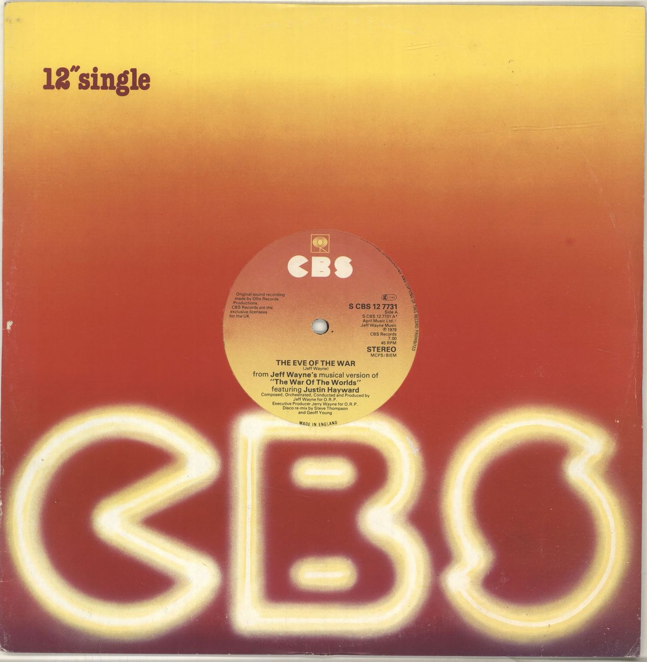 JEFF WAYNE featuring JUSTIN HAYWARD The Eve Of The War (1979 UK 12" vinyl single, also featuring Horsell Common And The Heat Ray, die-cut CBS company sleeve SCBS127731)