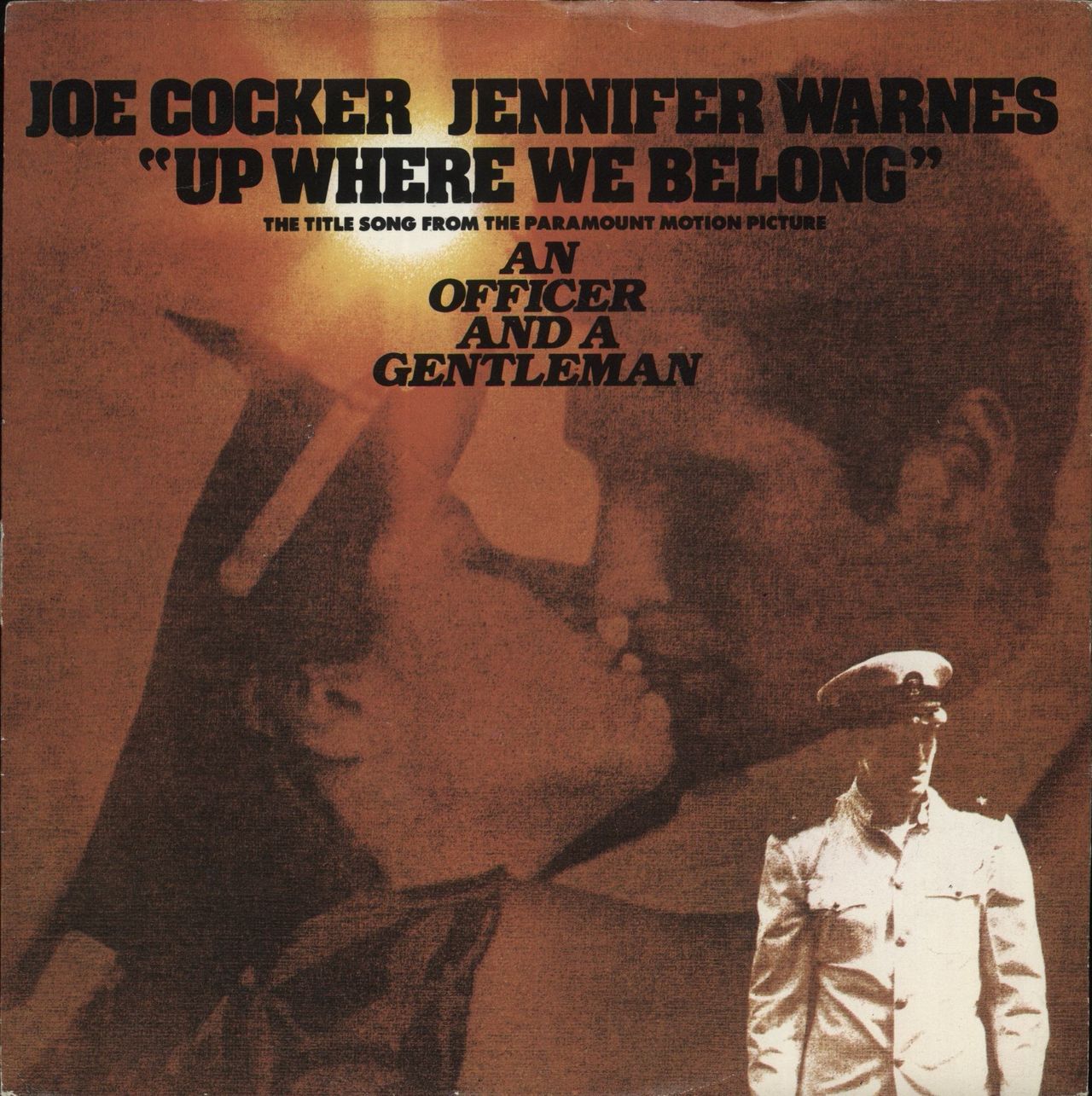 JOE COCKER & JENNIFER WARNES Up Where We Belong (1982 UK 7" vinyl single featuring the classic track taken from the movie soundtrack of 'An Officer And A Gentleman', also including Sweet Little Woman by Joe Cocker, picture sleeve WIP6830)