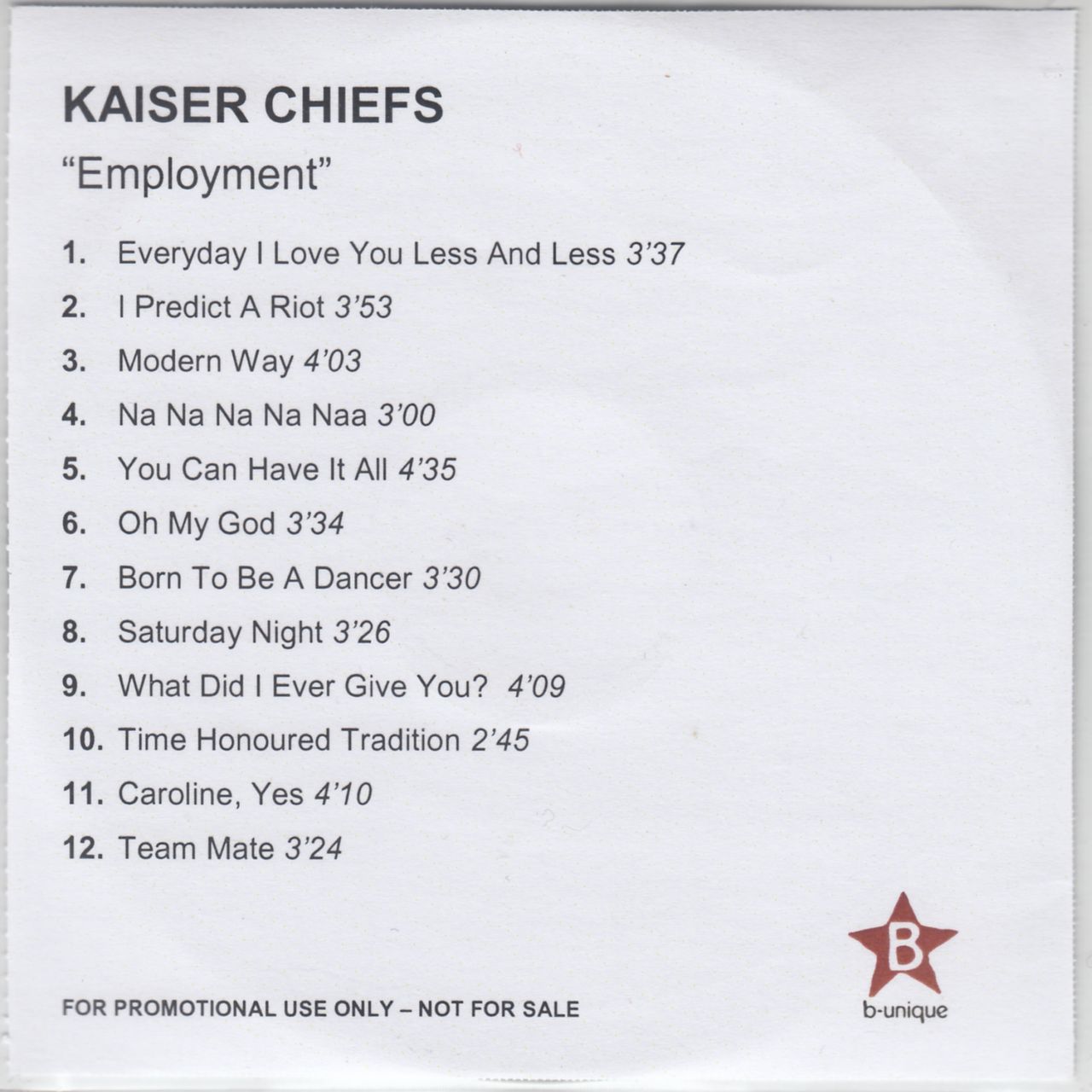 KAISER CHIEFS Employment (2005 UK 12-track advance promotonal