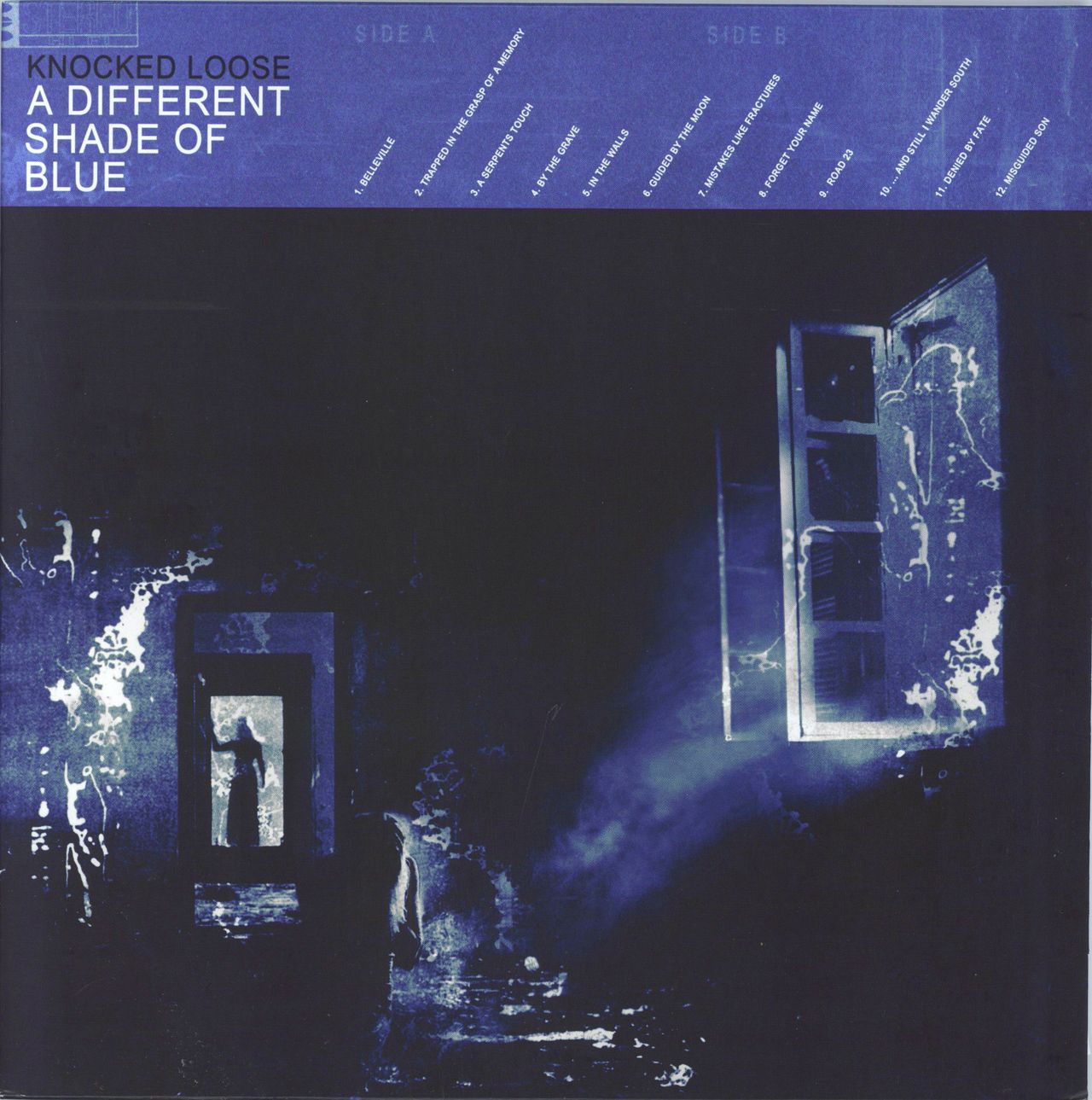 KNOCKED LOOSE A Different Shade of Blue (2019 UK HMV Exclusive 12-track LP, with picture sleeve and fold-out insert, pressed on Royal Blue and Black Split Vinyl limited to 200 Copies. Second full-length from the Oldham County metalcore band, including Mistakes Like Fractures, By The Grave, and Trapped In The Grasp of a Memory, as well as guest appearances from Emma Boster of Dying Wish and Keith Buckley from Every Time I Die. A Modern classic that has helped shape a new generation of metalcore bands)